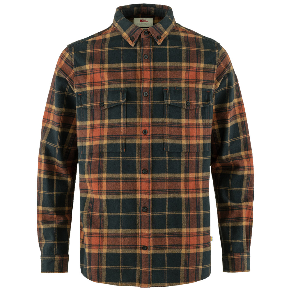 Męska koszula flanelowa Fjällräven do pracy i wypoczynku. Wygodny materiał, podwijane rękawy, kieszenie na piersi zapinane na guziki z miejscem na długopis.