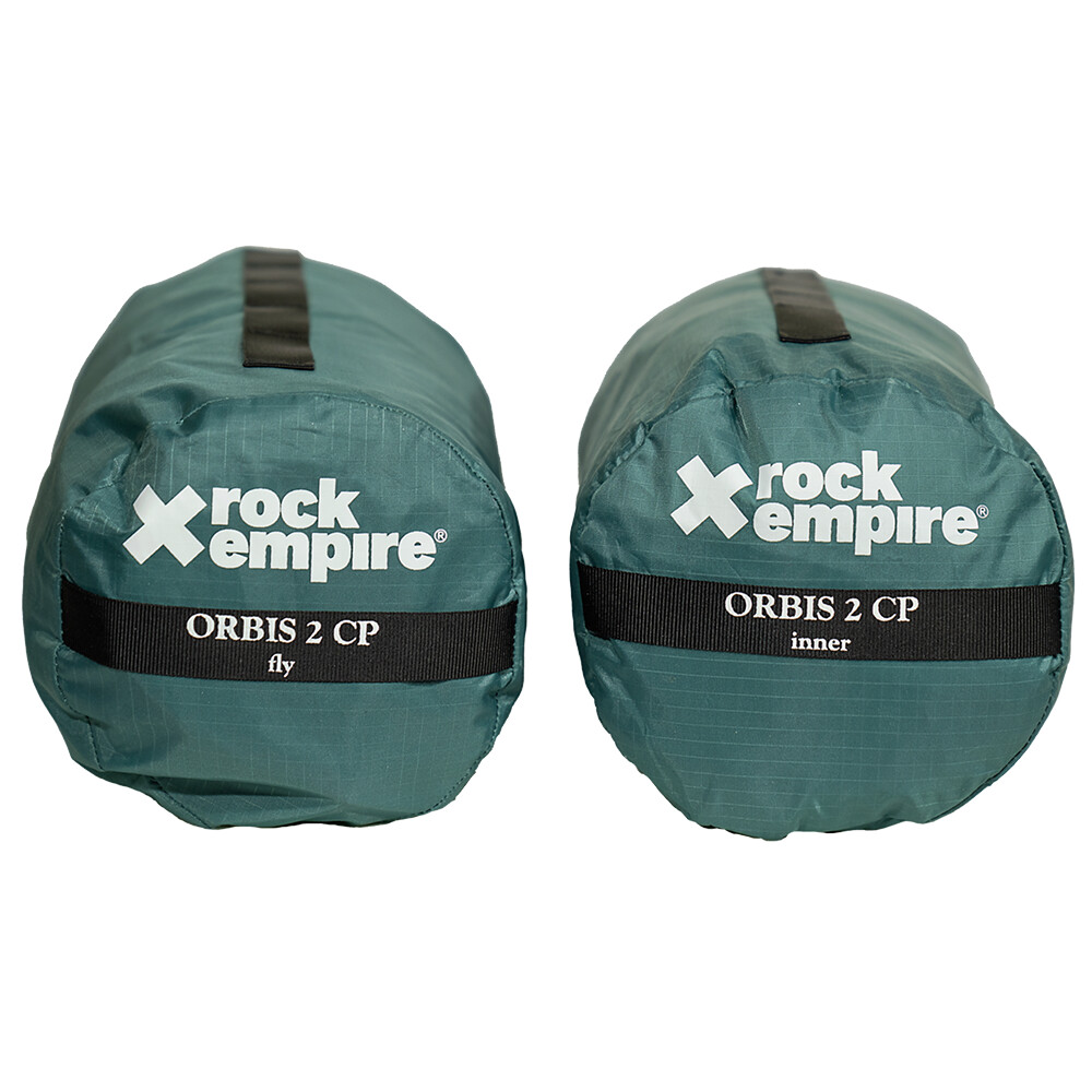 Rock Empire Orbis 2 CP to nowa wersja popularnego 2-osobowego namiotu w bardziej kompaktowym opakowaniu. Cały namiot jest teraz zapakowany w 3 oddzielne pakiety (tropik, namiot wewnętrzny i konstrukcja słupów). Pozwala to na lepsze spakowanie namiotu do plecaka, podzielenie ciężaru noszonego z partnerem lub oddzielenie mokrego namiotu tropikalnego od suchego namiotu wewnętrznego. Pokrowce mają wszyte oczka i można użyć dołączonych pasków, aby połączyć je ze sobą lub przymocować do ramy roweru.