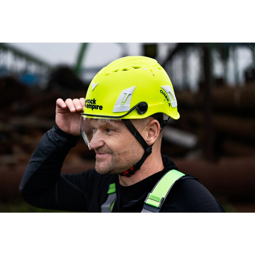 Osłona marki Rock Empire, która służy jako ochrona oczu przed niebezpieczeństwami związanymi z latającymi cząsteczkami. Nadaje się do przymocowania do kasku Rock Empire Oreka.