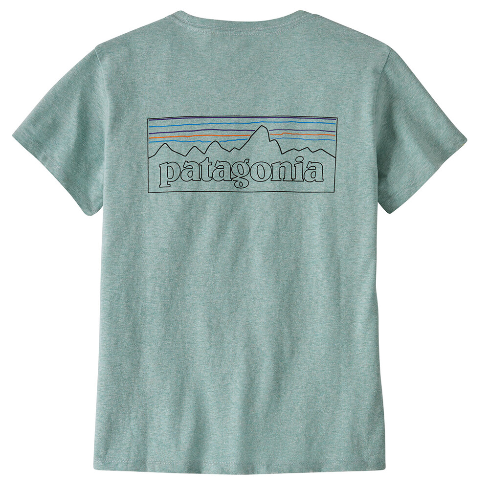 Damska koszulka P-6 Logo Responsibili-Tee marki Patagonia łączy w sobie miękką bawełnę organiczną i oddychający poliester z recyklingu.