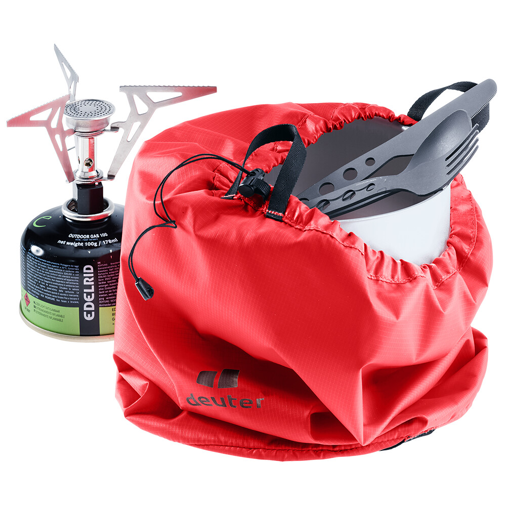 Praktyczna torba do pakowania firmy deuter pomaga uporządkować rzeczy w plecaku, torbie podróżnej lub walizce. Posiada zamknięcie na sznurek, dwie pętle na górze do zawieszenia i większy uchwyt do przenoszenia na dole. Torba ma okrągłą podstawę, dzięki czemu świetnie nadaje się również do pakowania sprzętu kempingowego.