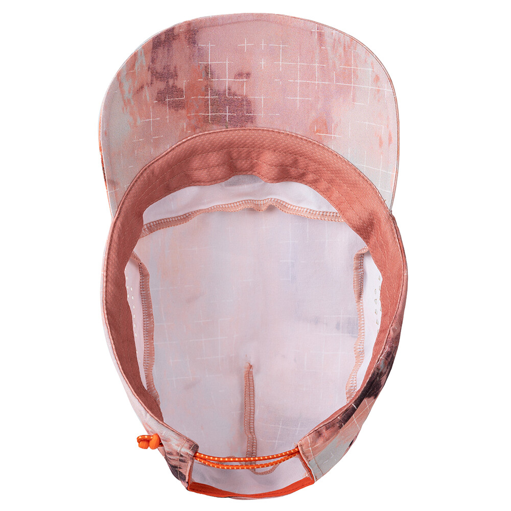 Czapka do biegania wykonana z lekkiego, szybkoschnącego i oddychającego materiału. Współczynnik ochrony UPF 50 chroni przed promieniami słonecznymi. Czapkę można ściągnąć z tyłu, a daszek można dowolnie kształtować.