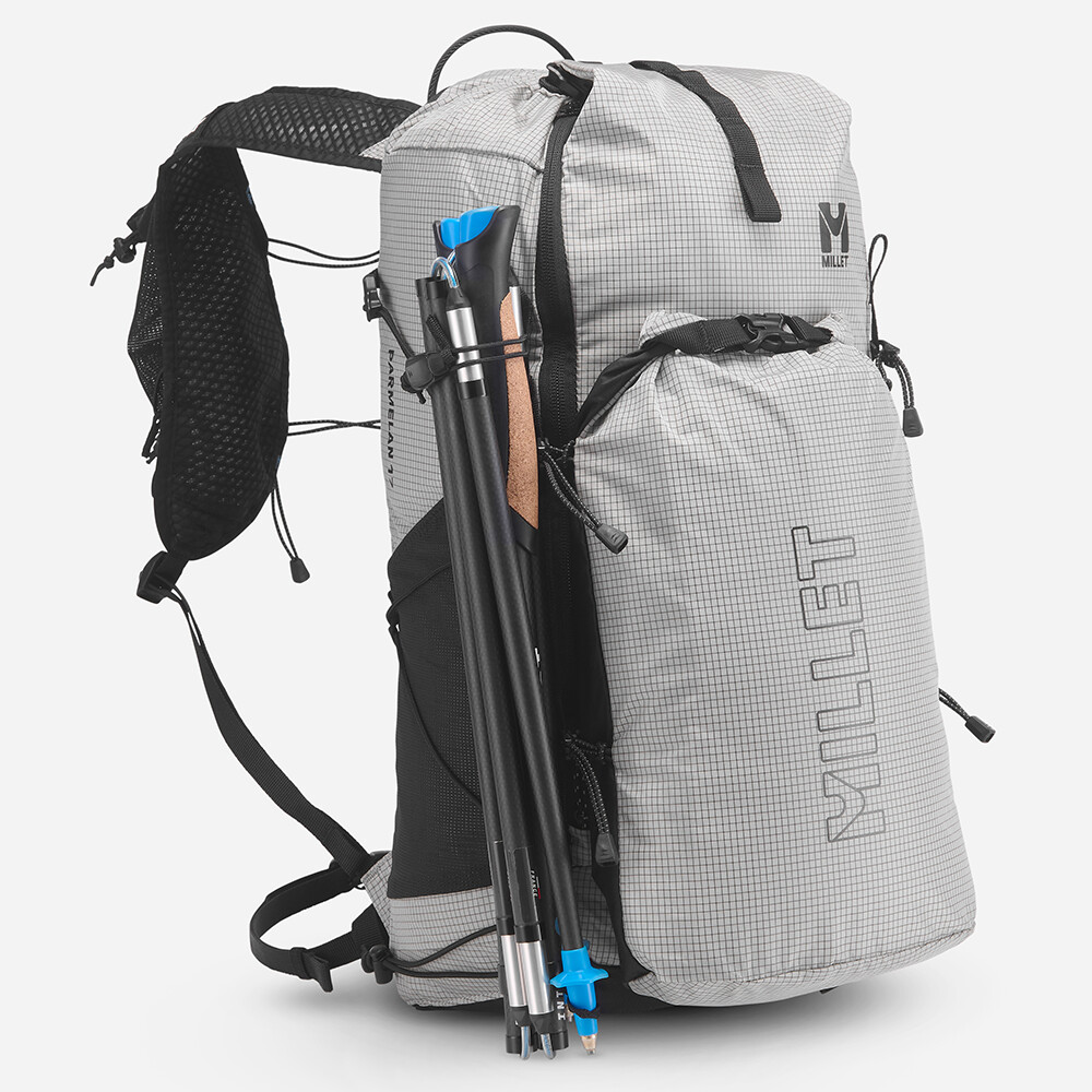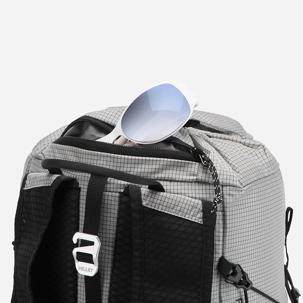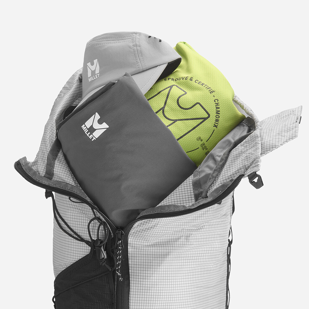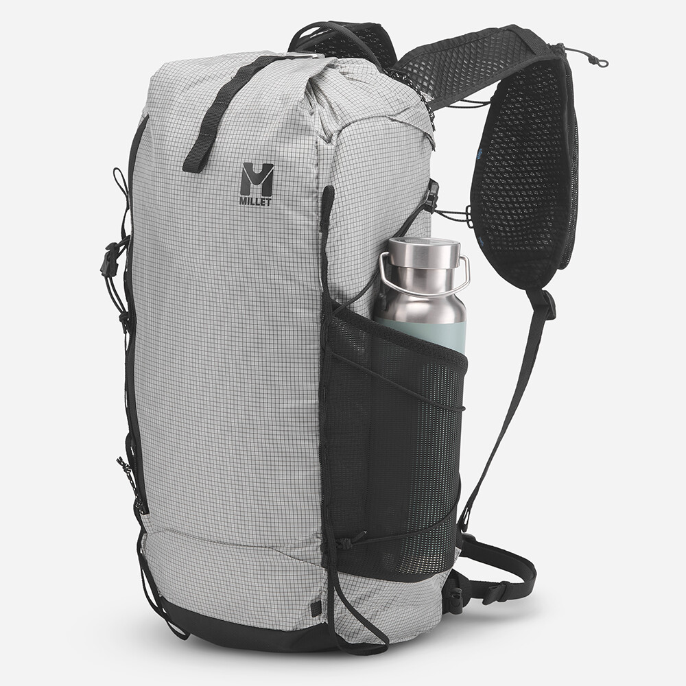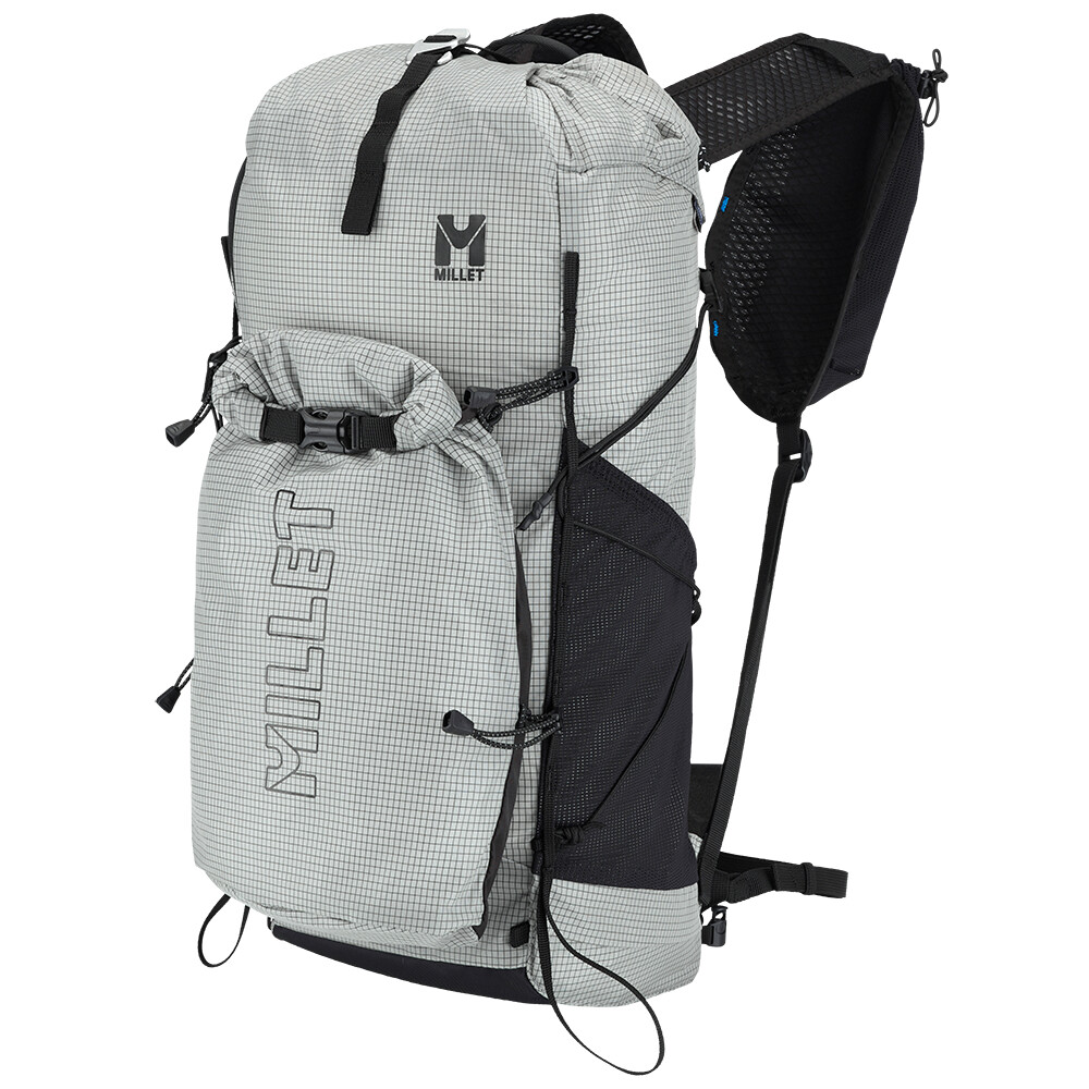 Plecak turystyczny od Millet, który jest interesujący ze względu na niską wagę, zaledwie 480 g. Posiada jedną główną kieszeń z dostępem z przodu i zwijaną pokrywę z zapięciem na klamrę. Zaletą są elastyczne kieszenie z siatki na paskach naramiennych, w których można zmieścić miękką butelkę z wodą lub telefon komórkowy. Z przodu plecaka znajduje się odpinana kieszeń, którą można wykorzystać na zapasową kurtkę lub przekąski. Do plecaka można również przymocować kijki turystyczne, które można łatwo zdjąć podczas marszu, bez konieczności zdejmowania plecaka z pleców. Pas piersiowy jest zaprojektowany w taki sam sposób, jak w kamizelkach do biegania, z wielopunktową elastyczną taśmą.
