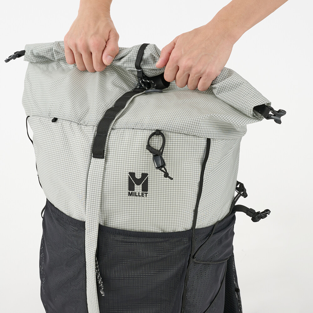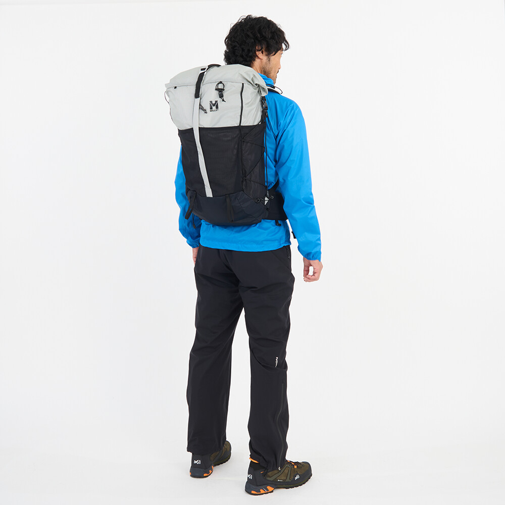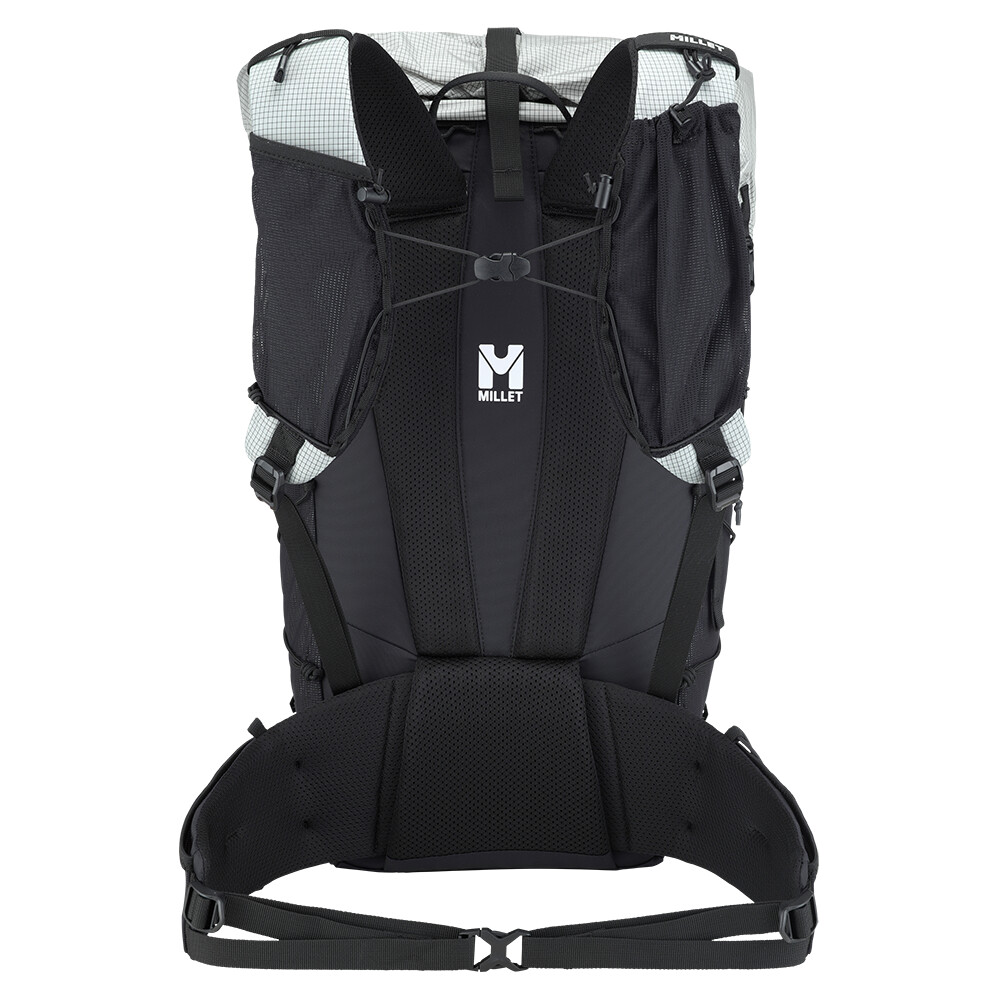 Plecak turystyczny Millet, który jest interesujący ze względu na niewielką wagę, zaledwie 980 g. Ma jedną główną kieszeń z dostępem z przodu i zwijaną pokrywę z klamrą. Zaletą są elastyczne kieszenie z siatki na paskach naramiennych, w których można zmieścić miękką butelkę z wodą lub telefon komórkowy. Do plecaka można również przymocować kijki turystyczne, które można łatwo wyjąć podczas marszu, bez konieczności zdejmowania plecaka z pleców. Pas piersiowy jest zaprojektowany w taki sam sposób, jak w kamizelkach do biegania, z wielopunktową elastyczną taśmą. Zwijana pokrywa pozwala na różnorodność w ilości spakowanego sprzętu. Pozwala to zmieścić w plecaku zapasową kurtkę, a nawet linę.