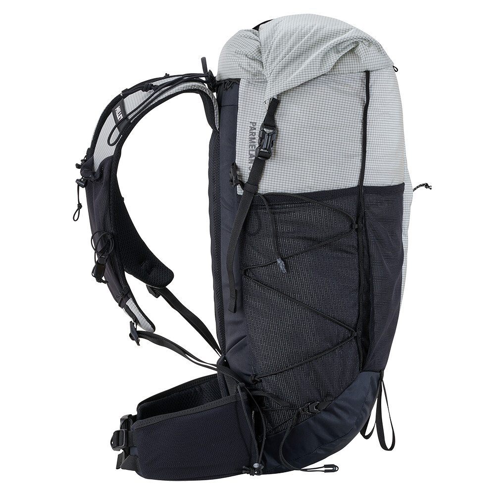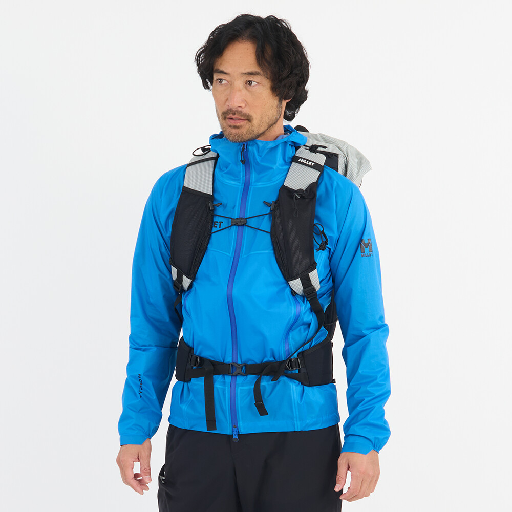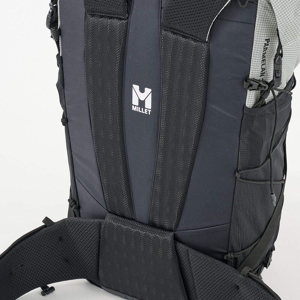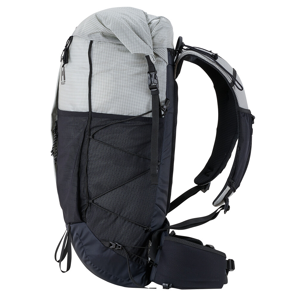 Plecak turystyczny Millet, który jest interesujący ze względu na niewielką wagę, zaledwie 980 g. Ma jedną główną kieszeń z dostępem z przodu i zwijaną pokrywę z klamrą. Zaletą są elastyczne kieszenie z siatki na paskach naramiennych, w których można zmieścić miękką butelkę z wodą lub telefon komórkowy. Do plecaka można również przymocować kijki turystyczne, które można łatwo wyjąć podczas marszu, bez konieczności zdejmowania plecaka z pleców. Pas piersiowy jest zaprojektowany w taki sam sposób, jak w kamizelkach do biegania, z wielopunktową elastyczną taśmą. Zwijana pokrywa pozwala na różnorodność w ilości spakowanego sprzętu. Pozwala to zmieścić w plecaku zapasową kurtkę, a nawet linę.