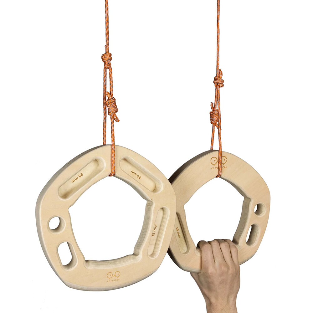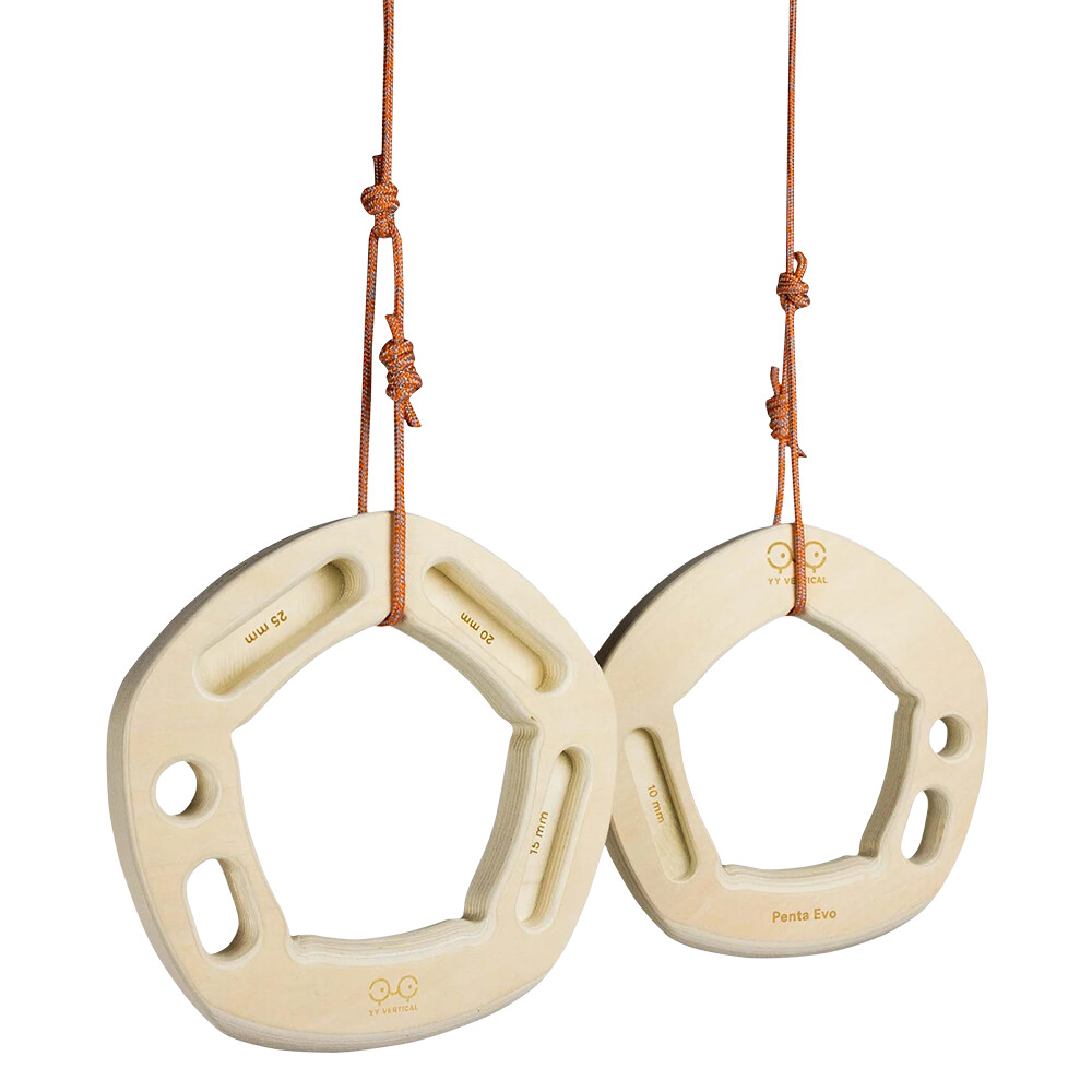 Penta Evo służy jako pierścień treningowy do treningu siłowego, ćwiczeń, rozgrzewki i zwiększania zakresu w stawach. Jednocześnie możemy wzmacniać i ćwiczyć palce na szynach. Pierścienie można zawiesić w dowolnym miejscu bez konieczności stałego montażu. Doskonała pomoc treningowa do domu i w skały.