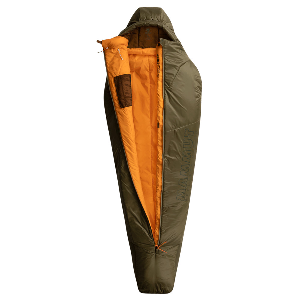 Trzysezonowy śpiwór z syntetycznym wypełnieniem wewnętrznym Perform Fiber Bag -7°C marki Mammut zapewni komfortowy sen nawet wtedy, gdy temperatura powietrza spadnie poniżej zera. Wypełniony jest mikrowłóknem, które gwarantuje doskonałą izolację i łatwą konserwację. Inne ważne cechy (klapka osłaniająca pod zamkiem błyskawicznym i kołnierz ściągany sznurkiem) również mają na celu maksymalne wyeliminowanie cennych wycieków ciepła. Z kolei centralny dwukierunkowy zamek błyskawiczny umożliwia skuteczną regulację temperatury, gdy śpiwór jest zbyt gorący. Specjalny suwak ułatwia zapinanie i zapobiega zacinaniu się materiału. Poczucie ogólnego komfortu dopełnia przyjemnie miękki materiał w kapturze, który nie szeleści.