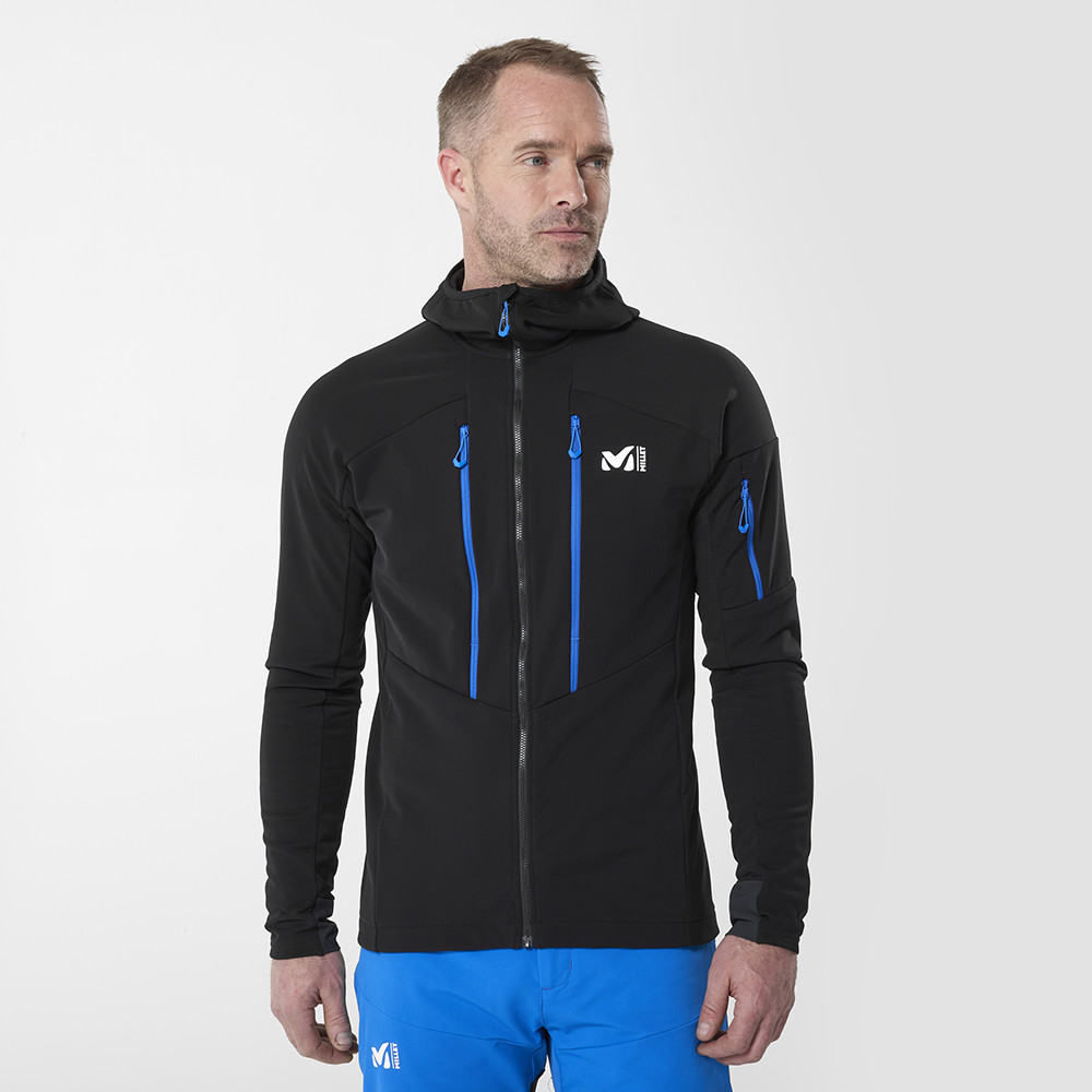Męska wiatroszczelna bluza z kapturem Pierre Ment Hoodie marki Millet o hybrydowej konstrukcji. Zaprojektowana z myślą o skialpach i innych aktywnościach o wysokiej intensywności, takich jak bieganie lub narciarstwo biegowe.