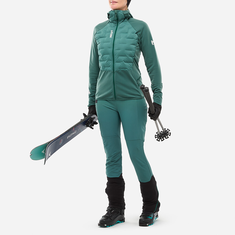 Damska kurtka Pierra Ment Hybrid Hood Jacket francuskiej marki Millet jest odpowiednia na zimowe wyprawy z nartami w góry.
