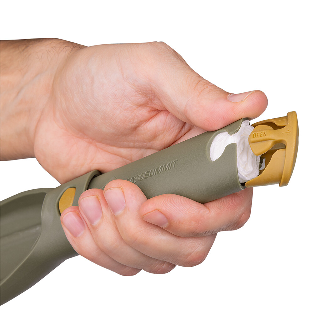 Saperka od Sea to Summit to idealne akcesorium, jeśli zamierzasz spędzić więcej dni z dala od cywilizacji. Jest składana, więc zajmuje minimalną ilość miejsca w plecaku. Dodatkowo, wnętrze rączki można wykorzystać do przechowywania krzesiwa, zapalniczki lub papieru toaletowego. W plenerze może pomóc zatrzeć ślady, a nawet wykopać prowizoryczne ognisko.