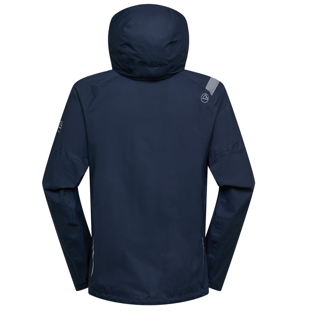Męska wodoodporna i wiatroszczelna kurtka z regulowanym kapturem chroniącym przed deszczem. Wentylacja pod pachami umożliwia regulację temperatury podczas bardziej wymagających aktywności. Mankiety rękawów są regulowane za pomocą rzepów.