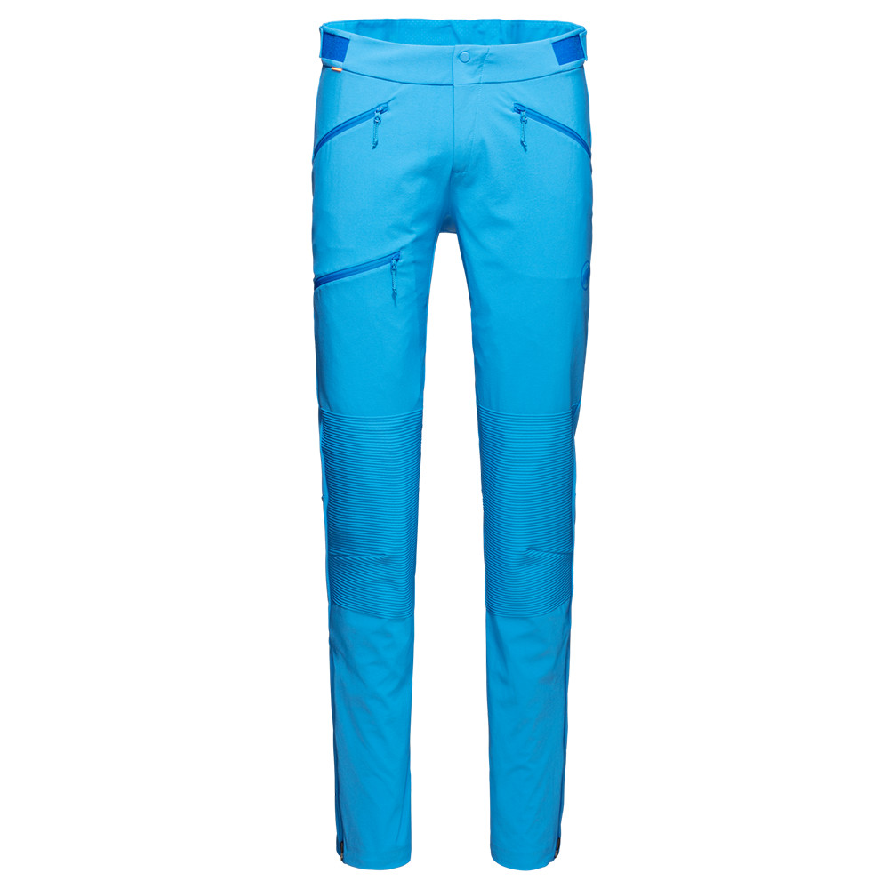 Męskie spodnie narciarskie Mammut zapewniają doskonałą ochronę na stoku. Spodnie mają wyższą talię, szelki, zapinaną na zamek wentylację, mnóstwo kieszeni, regulowaną szerokość nogawek i wzmocnienia na nogawkach. Spodnie są wodoodporne, wiatroszczelne i oddychające.