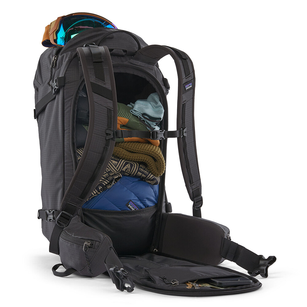 Plecak narciarski Patagonia 38L jest odpowiedni na jednodniowe wędrówki, bardziej wymagające zjazdy lub jeśli jesteś liderem dużej grupy. Główna kieszeń jest łatwo dostępna z przodu, a także z tylnego panelu. Oznacza to, że śnieg nie dostanie się do plecaka i można szybko znaleźć potrzebny sprzęt. Oczywiście jest też osobna kieszeń na sprzęt lawinowy (sondę, łopatę, piłę śnieżną...), paski do przenoszenia nart lub snowboardu, uchwyt na kask i czekan. W górnej części plecaka znajduje się przestronna kieszeń, w której można przechowywać rzeczy, które trzeba mieć szybko pod ręką, takie jak okulary przeciwsłoneczne i gogle narciarskie, przekąskę lub radio / telefon komórkowy.