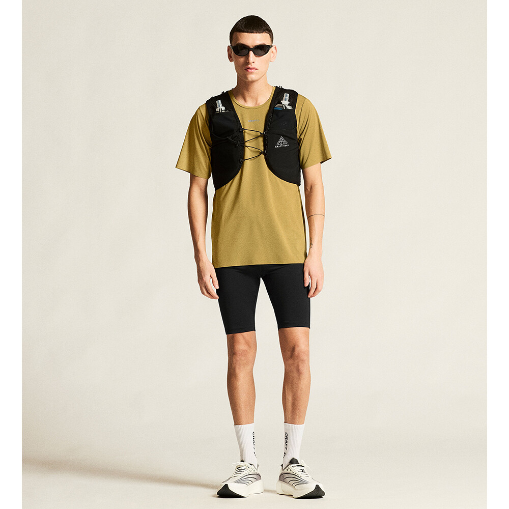 Ultralekka męska koszulka Pro Trail SS Tee marki Craft przeznaczona do biegania, jazdy na rolkach, uprawiania sportów multisportowych i aktywności w pomieszczeniach.