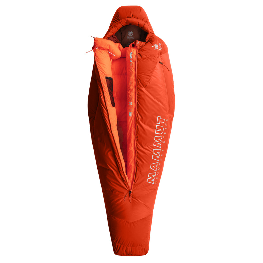 Ciepły śpiwór puchowy Protect Down Bag -18°C szwajcarskiej marki Mammut, który zapewni komfortowy sen nawet wtedy, gdy temperatura powietrza spadnie znacznie poniżej zera. Wypełniony jest kaczym puchem o podwyższonej sile wypełnienia (700 cuin), co gwarantuje doskonałe właściwości izolacyjne. Wierzchni materiał pokryty jest w odsłoniętych miejscach poliuretanową membraną, która chroni śpiwór przed przemoczeniem. Wewnętrzna konstrukcja śpiwora (komora "H") oraz inne ważne elementy (osłona pod zamkiem i kołnierz ściągany sznurkiem) również zostały zaprojektowane tak, aby w jak największym stopniu wyeliminować wyciek cennego ciepła. Centralny dwukierunkowy zamek błyskawiczny pozwala natomiast na skuteczną regulację temperatury, gdy śpiwór jest zbyt gorący. Specjalny suwak ułatwia zapinanie i zapobiega zacinaniu się materiału. Poczucie ogólnego komfortu dopełniają boczne otwory wentylacyjne czy przyjemny, miękki materiał w kapturze, który nie szeleści.