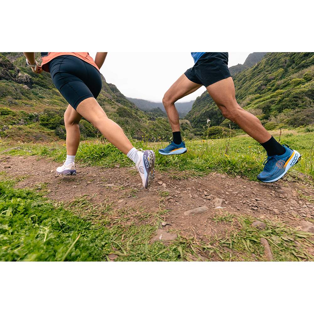 W bardziej wymagającym terenie, gdzie biegacz napotyka większe nierówności, takie jak skały, napompowane małe nierówności terenu i tym podobne, wysokość stopy nad terenem ze względu na wyższą amortyzację jest już zauważalna - w negatywnym sensie. Na bardziej technicznym terenie Vista jest mniej stabilna, nieco trudniejsza do kontrolowania. W przypadku bardziej terenowych środowisk MTN Racer jest lepszym butem, w którym stopa jest bliżej ziemi, a kostki nie są poddawane tak dużej dźwigni w przypadku ukośnego pedałowania.
