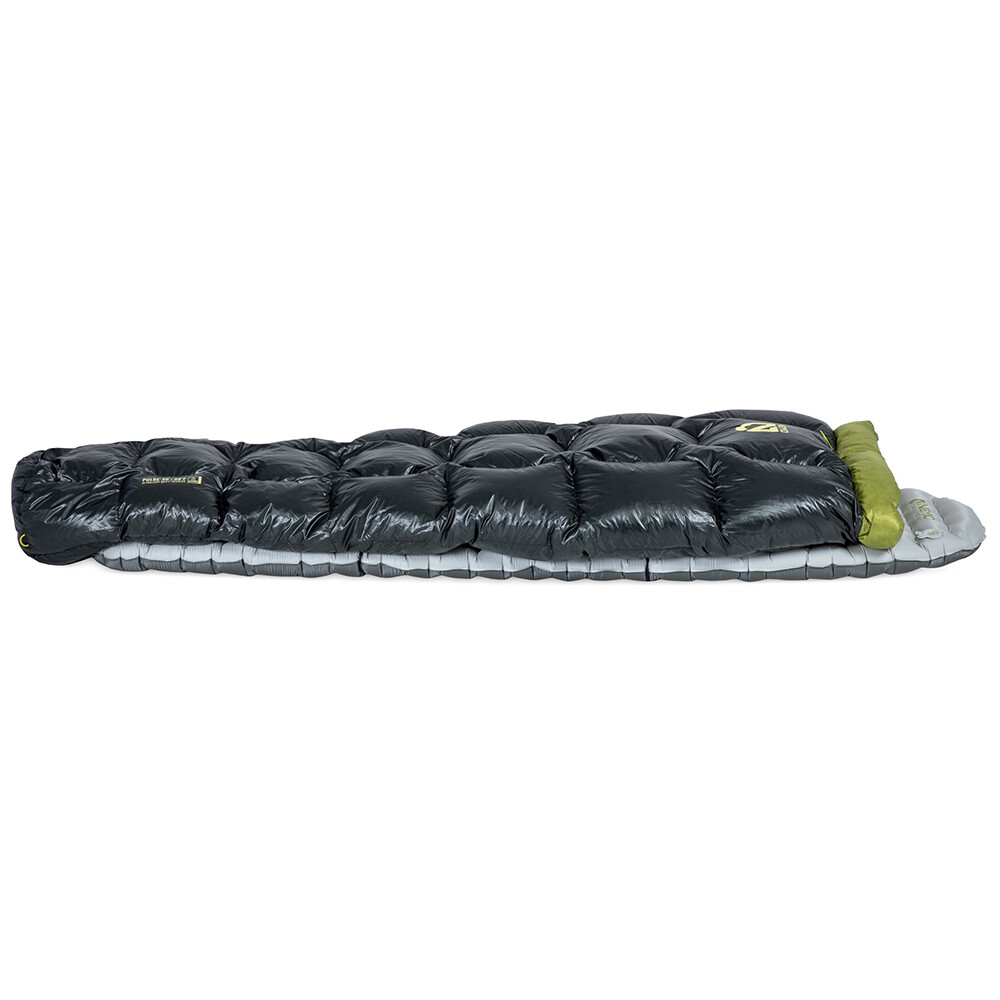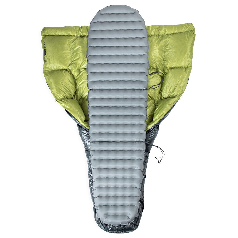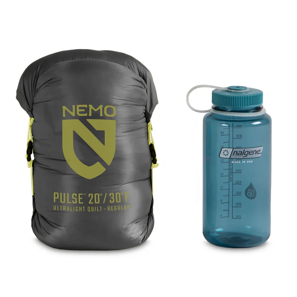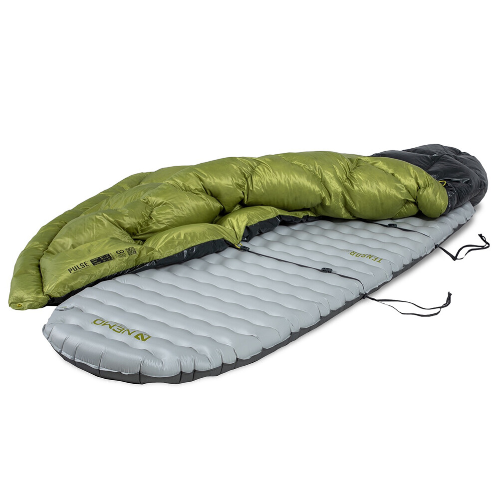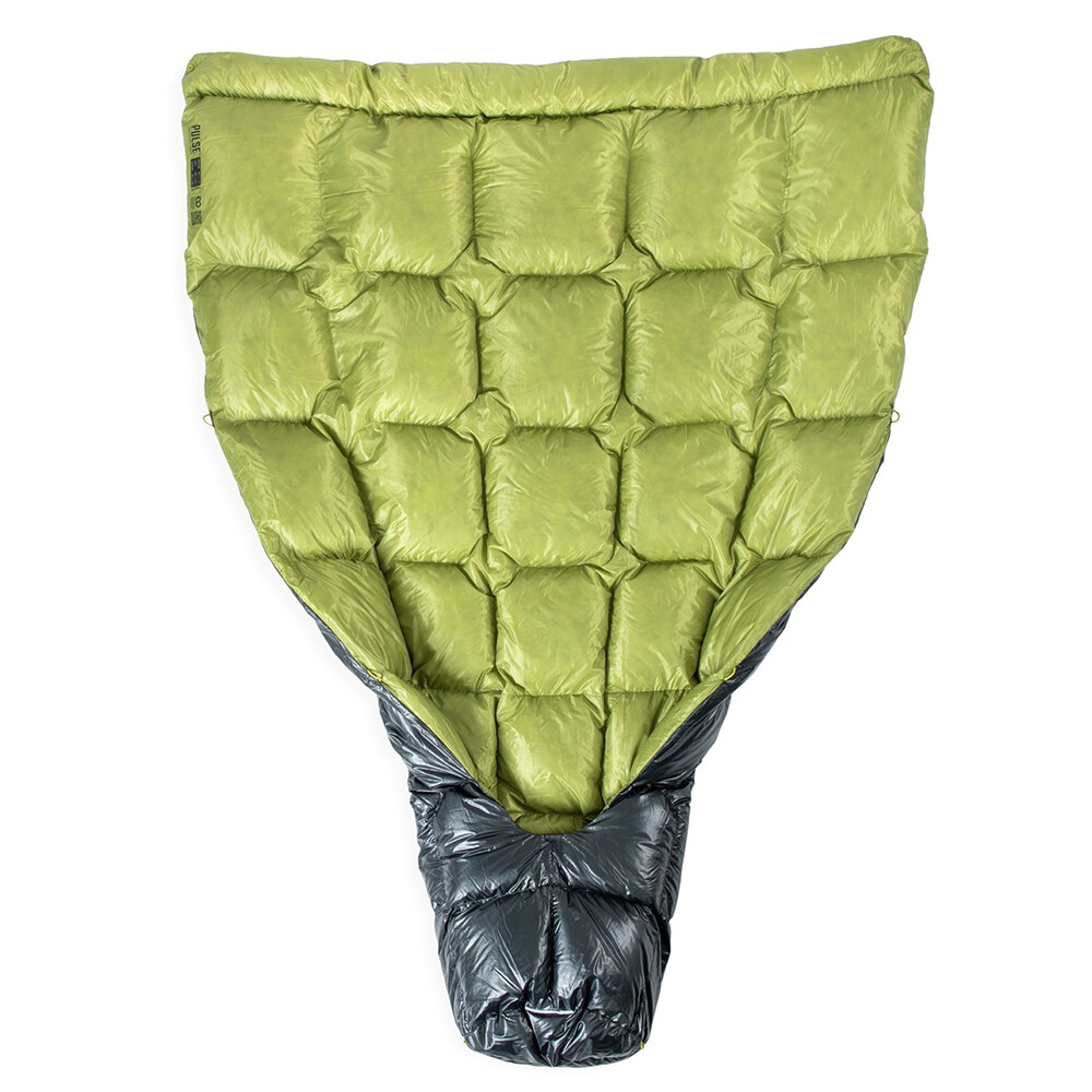 Koc typu quilt, czyli śpiwór bez zamka błyskawicznego, kaptura i bez dolnej części izolacyjnej, jest idealny jako lekka opcja do spania w namiocie, śpiworze lub w hamaku. Izolacja składa się z wysokiej jakości puchu z ochroną przed wilgocią (warstwa z drobinkami złota). Kołdra jest wykonana jako pikowany koc, aby zapobiec jej zapadaniu się, dzięki czemu pierze pozostaje równomiernie rozłożone. Górna część wokół szyi jest ściągana sznurkiem i można ją zapiąć z tyłu. Dołączone są również paski do mocowania do materaca samochodowego. Quilt Pulse pochodzi z kolekcji Endless Promise firmy Nemo, która angażuje się w zrównoważoną produkcję przy użyciu materiałów pochodzących z recyklingu.