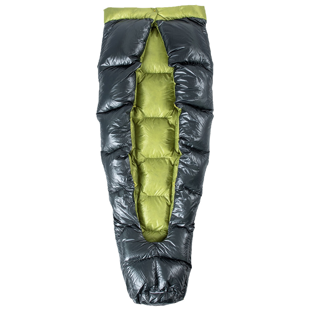 Puchowy śpiwór do użytku przez trzy sezony. Jego specjalny kształt jest maksymalnie dostosowany do spania na boku. Posiada dwa zapinane na zamek otwory wentylacyjne i szeroki zewnętrzny kołnierz, który można obrócić do wewnątrz, aby uzyskać jeszcze więcej ciepła.