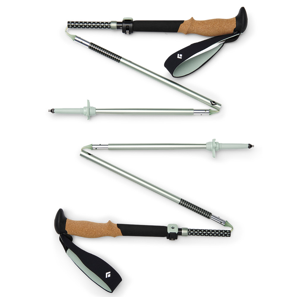 Pursuit FLZ od Black Diamond to kije dla wymagających użytkowników, którzy poszukują kompaktowych kijów mieszczących się w niewielkiej walizce. Doskonale wyprofilowane, ergonomiczne uchwyty zostały wykonane z naturalnego korka i przedłużone pianką. Zapewnia to większą zmienność chwytu. Kije są wytrzymałe i lekkie dzięki zastosowaniu wysokiej jakości stopu Al7000. Regulacja długości jest również łatwa i wygodna. Przeprojektowane i technicznie udane zamki Flicklock są łatwe w obsłudze nawet w rękawiczkach. Mechanizm składania FLZ umożliwia złożenie kijów do mniejszej długości. Dzięki dołączonym talerzykom śnieżnym, kije mogą być również używane do zimowych wędrówek lub wędrówek w rakietach śnieżnych itp.