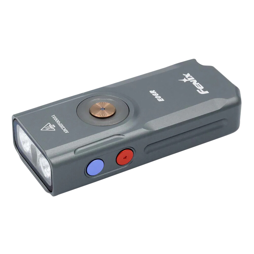 Akumulatorowa latarka E06R firmy Fenix oferuje wiele ciekawych funkcji w kieszonkowym opakowaniu. Ważąca zaledwie 54 gramy latarka charakteryzuje się wysokim strumieniem świetlnym wynoszącym aż 700 lumenów, a stożek światła równomiernie oświetla szeroki obszar do 110 metrów. Dostępne są łącznie cztery tryby światła białego, światło UV, czerwony laser (wskaźnik) oraz kilka trybów tzw. Breathing light - światła wokół przycisku włącznika o mocy od 0,5 do 1 lumena, które można wykorzystać do dyskretnej sygnalizacji lub identyfikacji lokalizacji latarki. Latarka wyposażona jest w klips, który umożliwia przymocowanie jej do kieszeni, paska plecaka lub ronda czapki, aby uwolnić ręce podczas świecenia. Podstawa latarki zawiera również magnes do przymocowania jej do czegokolwiek metalowego.