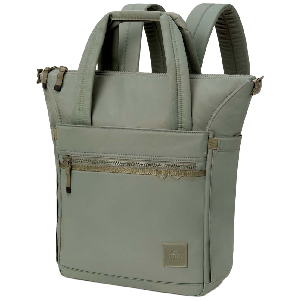 Sportowa wersja torebki, którą można wygodnie nosić jako plecak, to Renovation Hybrid Pack firmy Dakine. Posiada szerokie górne otwarcie z zamkiem błyskawicznym, wewnętrzną przegrodę na laptopa, mniejszą kieszeń zapinaną na zamek z przodu oraz dwie boczne, elastyczne kieszenie do przechowywania butelki lub parasola. Torba jest wykonana z wyściełanego materiału, paski na ramię są regulowane, a wszystkie zamki błyskawiczne są YKK.