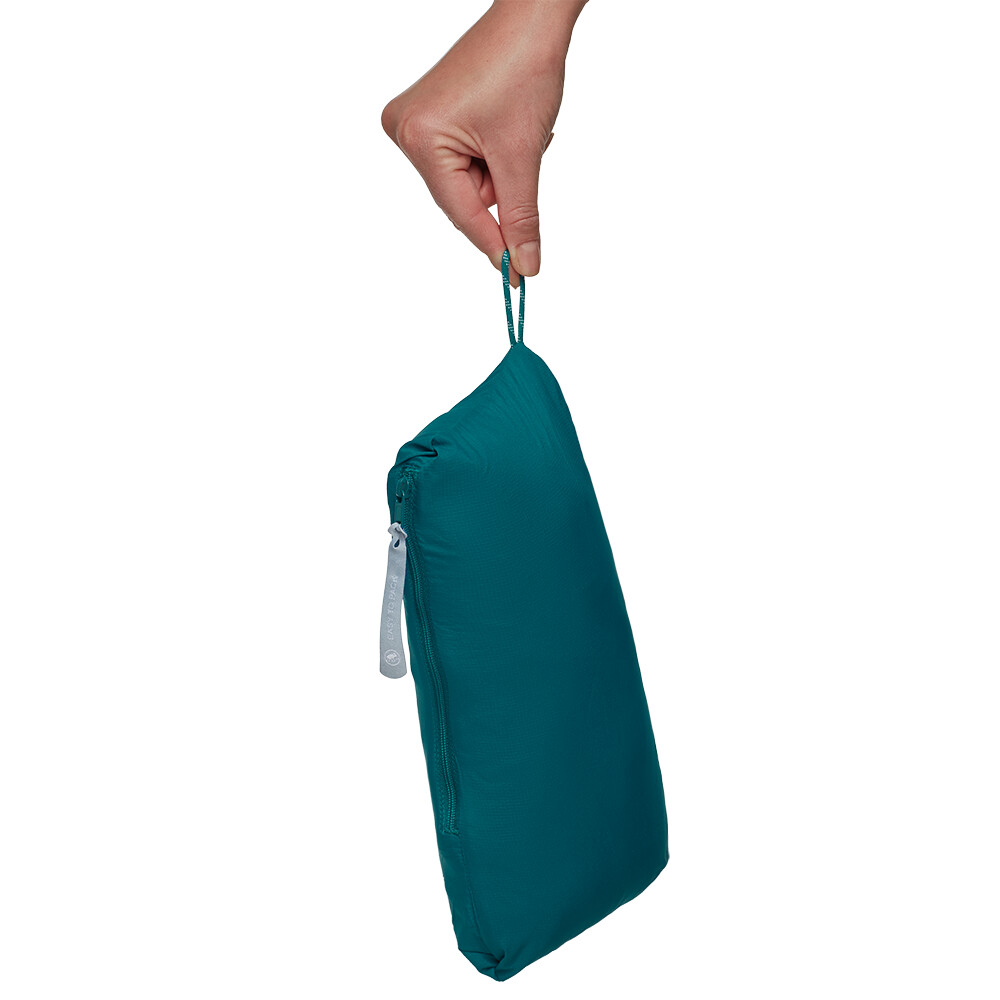 Kurtka wykonana jest z niezwykle lekkiego, odpornego na wiatr i wodę materiału. Syntetyczna izolacja Mammut Loopinsulation powstała w wyniku recyklingu lin wspinaczkowych. Panele z elastycznego materiału zapewniają oddychalność i swobodę ruchów. Sportowy damski krój idealnie dopasowuje się do sylwetki. Dopasowany kaptur idealnie pasuje pod kask. Dwie kieszenie są łatwo dostępne nawet przy zapiętym pasie biodrowym plecaka. Drobiazgi można przechowywać w wewnętrznej kieszeni na suwak. Rękawy i dół są wykończone elastycznym mankietem. Kurtkę można po prostu spakować do kieszeni.