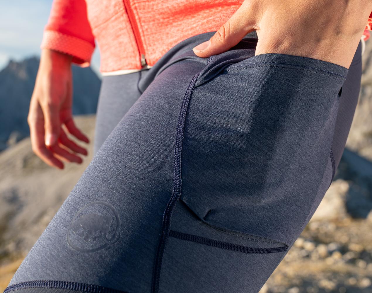 Damskie legginsy Mammut są idealnym wyborem dla Twojego ruchu. Legginsy są oddychające, szybkoschnące i elastyczne. Wyższy szeroki pas ze sznurkiem do ściągania idealnie pasuje. Legginsy mają dwie mniejsze kieszenie na drobiazgi.