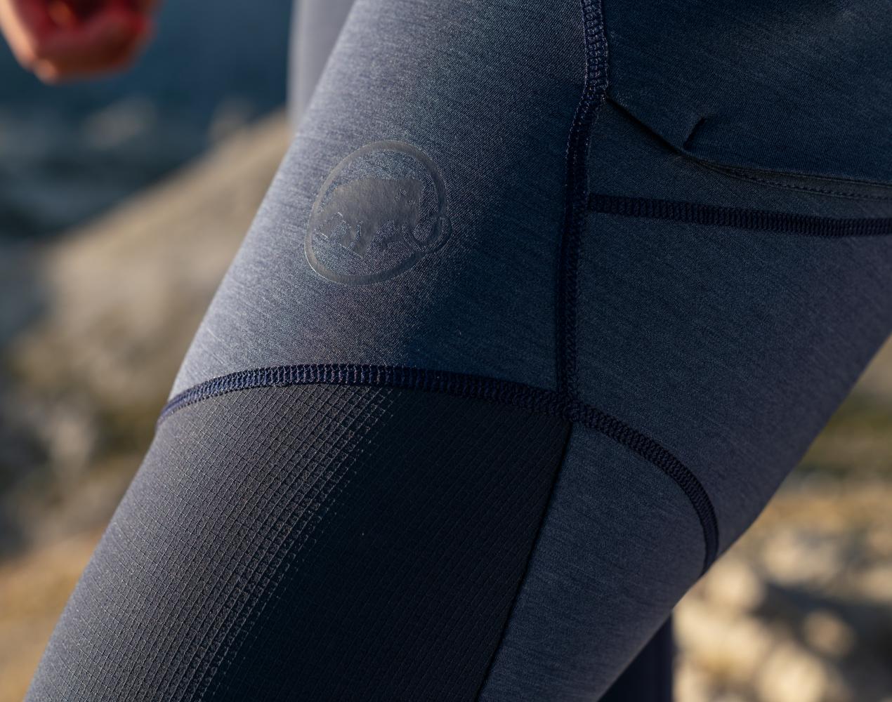 Damskie legginsy izolacyjne Mammut oferują optymalne właściwości termoregulacyjne. Połączenie materiałów zapewnia izolację, oddychalność i swobodę ruchów.