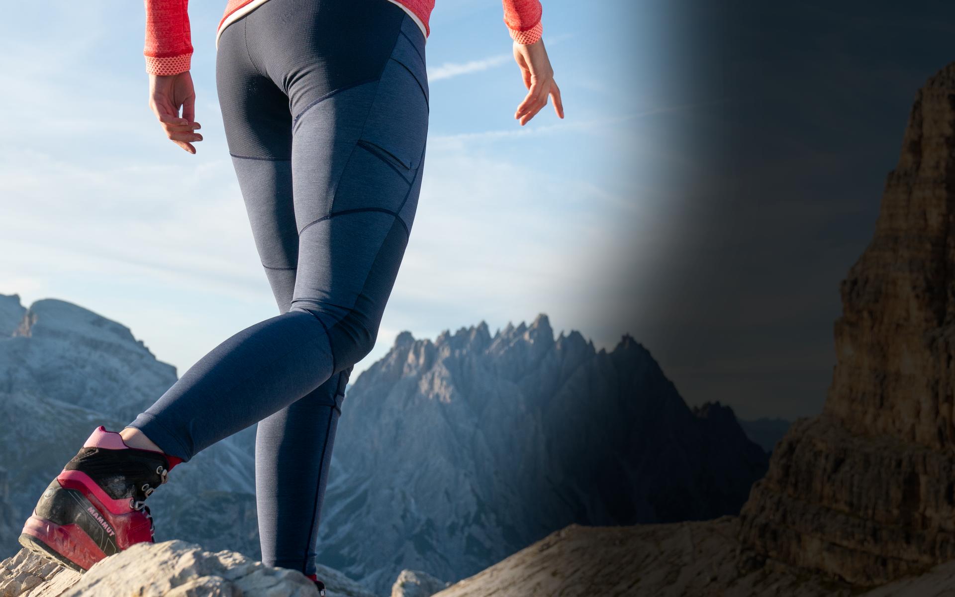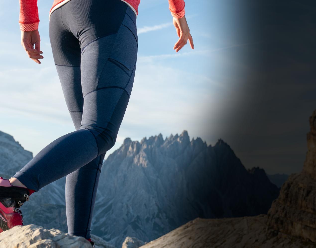 Lekkie damskie legginsy merino poniżej kolana, które pasują zarówno do butów narciarskich, jak i butów do biegania.