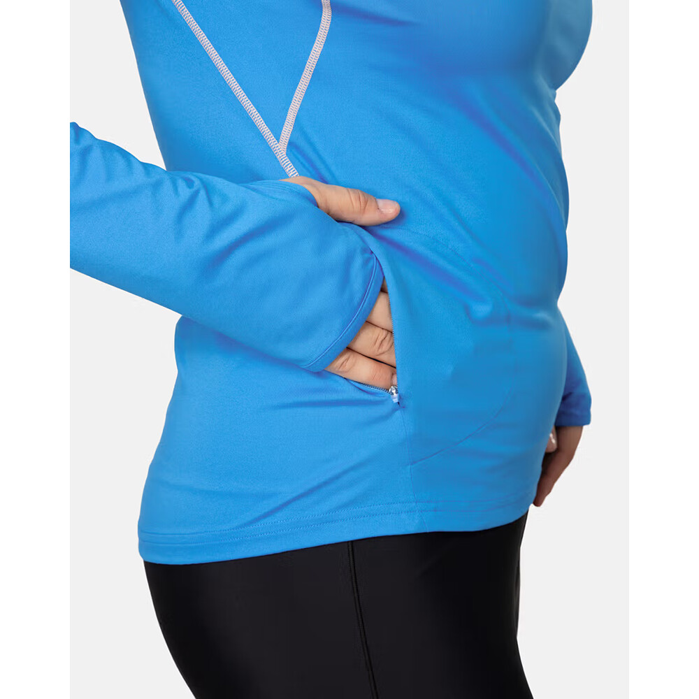 Lekka i funkcjonalna damska koszulka na każdą przygodę na świeżym powietrzu. Szybkoschnący materiał z ochroną UPF 50. Kaptur z wysokim kołnierzem i osłoną podbródka. Posiada również otwory na kciuki.