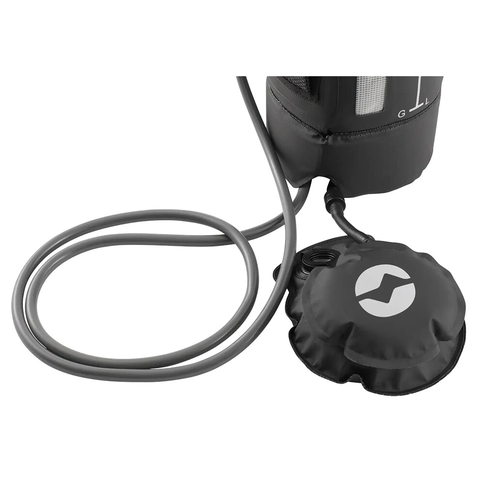 Prysznic ciśnieniowy Seabreeze firmy Outwell ma pojemność 12 litrów i poręczny przezroczysty wskaźnik poziomu ze skalą, dzięki czemu zawsze możesz zobaczyć, ile wody pozostało. Świetną funkcją jest zintegrowany termometr, który pozwala kontrolować idealną temperaturę wody, a zamykana głowica prysznicowa umożliwia kąpiel bez użycia rąk. Po spakowaniu zajmuje minimalną ilość miejsca w samochodzie i można go łatwo przechowywać wraz z innym sprzętem w dołączonej walizce transportowej. Aby zapewnić najwyższy komfort w warunkach terenowych, prysznic można uzupełnić szybkoschnącym ręcznikiem i ekologicznym detergentem .