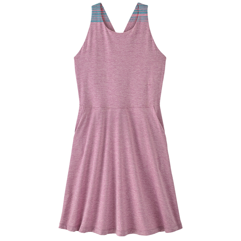 Sportowa sukienka z wygodnego materiału od Patagonii. Wygodny krój w kształcie litery A, skrzyżowane ramiączka i długość spódnicy powyżej kolan.