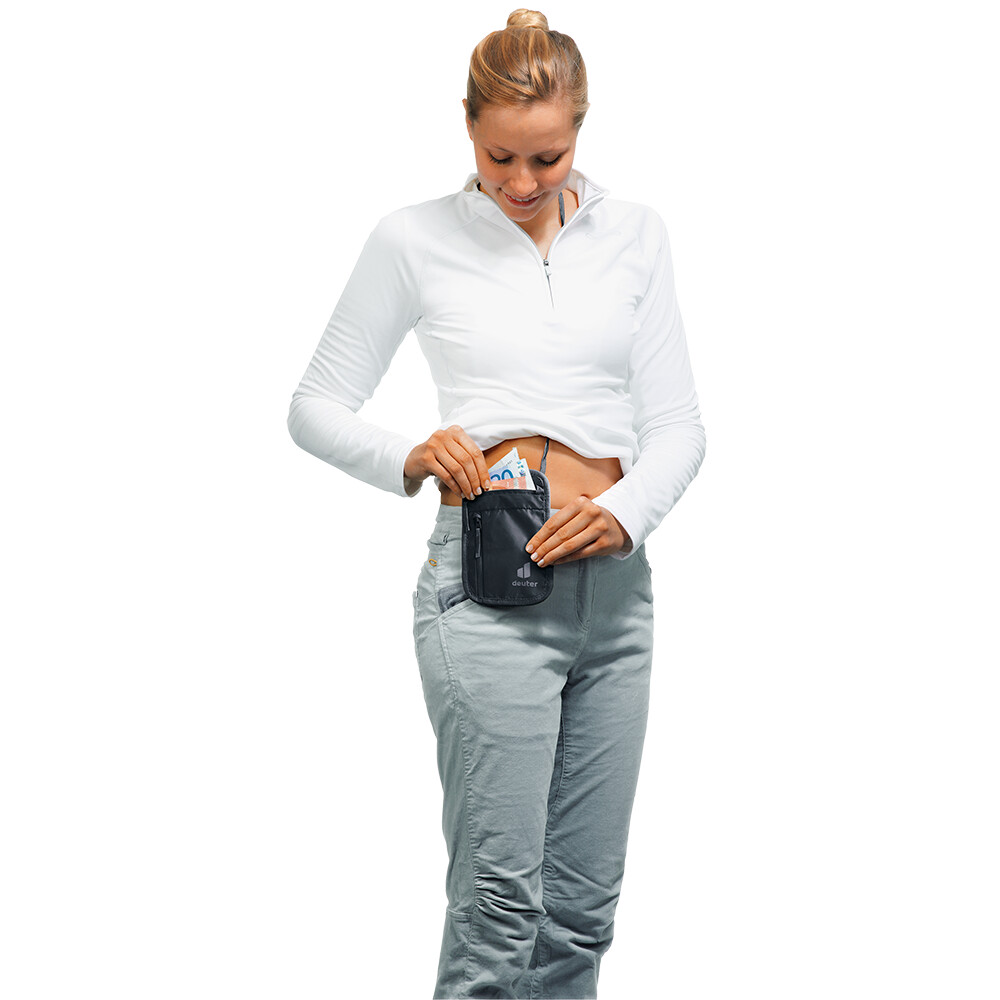 Security Wallet firmy deuter to idealny portfel podróżny. Ma płaski profil, jest wykonany z lekkiego materiału i doskonale chowa się pod t-shirtem lub koszulą. Dokumenty, pieniądze, karty kredytowe, bilety lotnicze i inne cenne przedmioty są bezpieczne na ciele i pod ręką. Portfel ma dwie kieszenie zapinane na zamek, regulowaną długość sznurka, a materiał jest wygodny nawet podczas noszenia na gołej skórze.