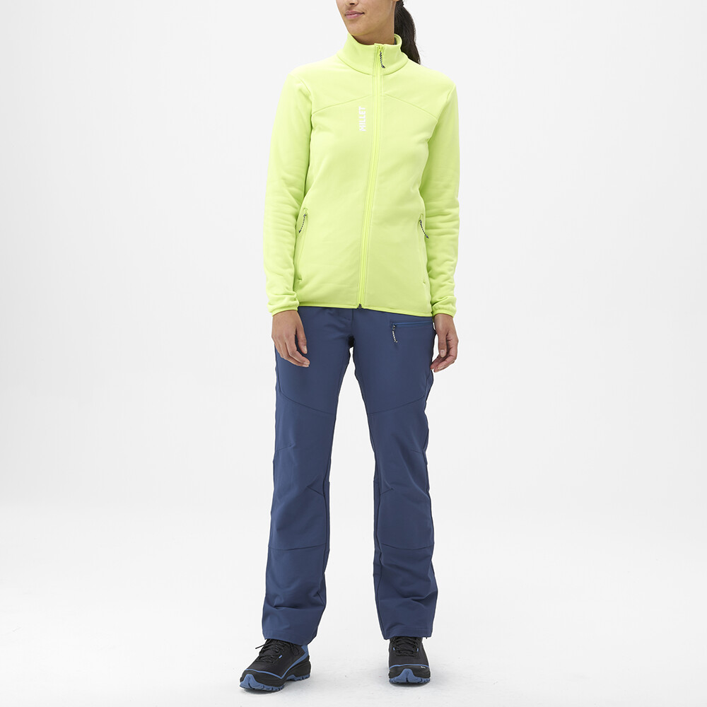 Bluza jest wykonana z elastycznego materiału Technostretch™, który zapewnia izolację i oddychalność. Sportowy damski krój z raglanowymi rękawami zapewni swobodę ruchów. Dwie zapinane na zamek kieszenie są umieszczone wyżej, aby były łatwo dostępne nawet podczas noszenia uprzęży wspinaczkowej lub zapinania pasa biodrowego plecaka.