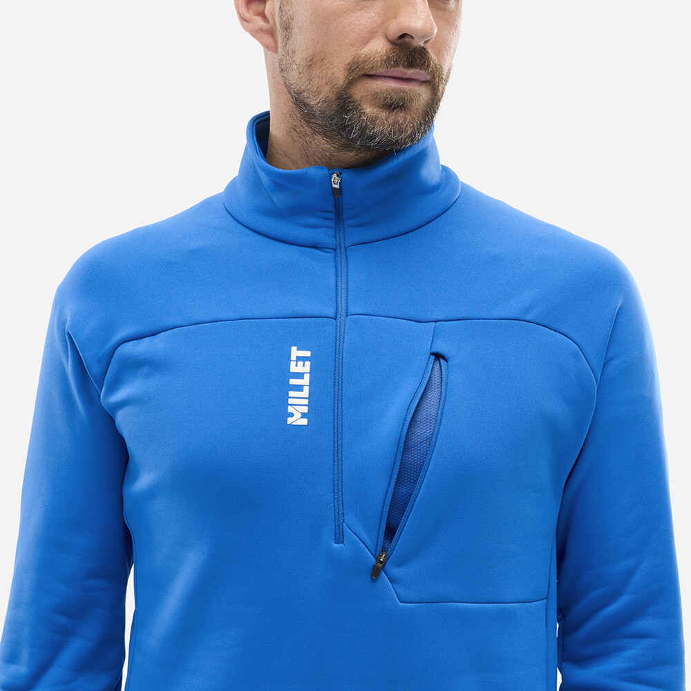 Ciepła bluza męska Millet z polaru Technostretch pochodzącego z recyklingu. Elastyczna, oddychająca, z zapinanymi na zamek kieszeniami, regulowanym dołem i dopasowanym kołnierzem. Idealna warstwa pośrednia.
