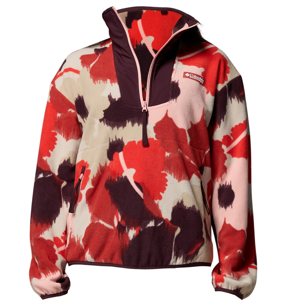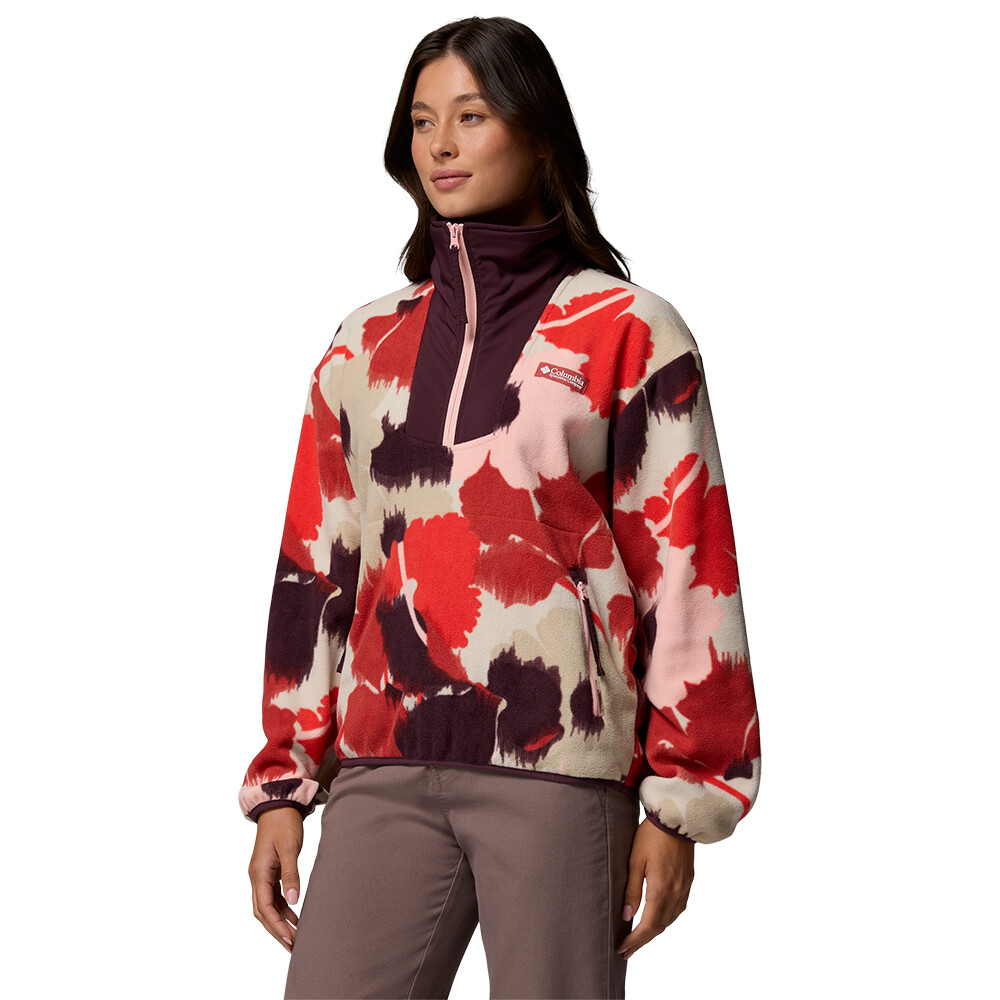 Damska bluza Sequoia Grove Printed Half Zip z kapturem 3/4 marki Columbia wykonana z miękkiego, przyjemnego w dotyku polaru, który zapewni Ci wygodę w mieście i na łonie natury. Posiada krótki zamek błyskawiczny i 2 zapinane na zamek kieszenie na dłonie.