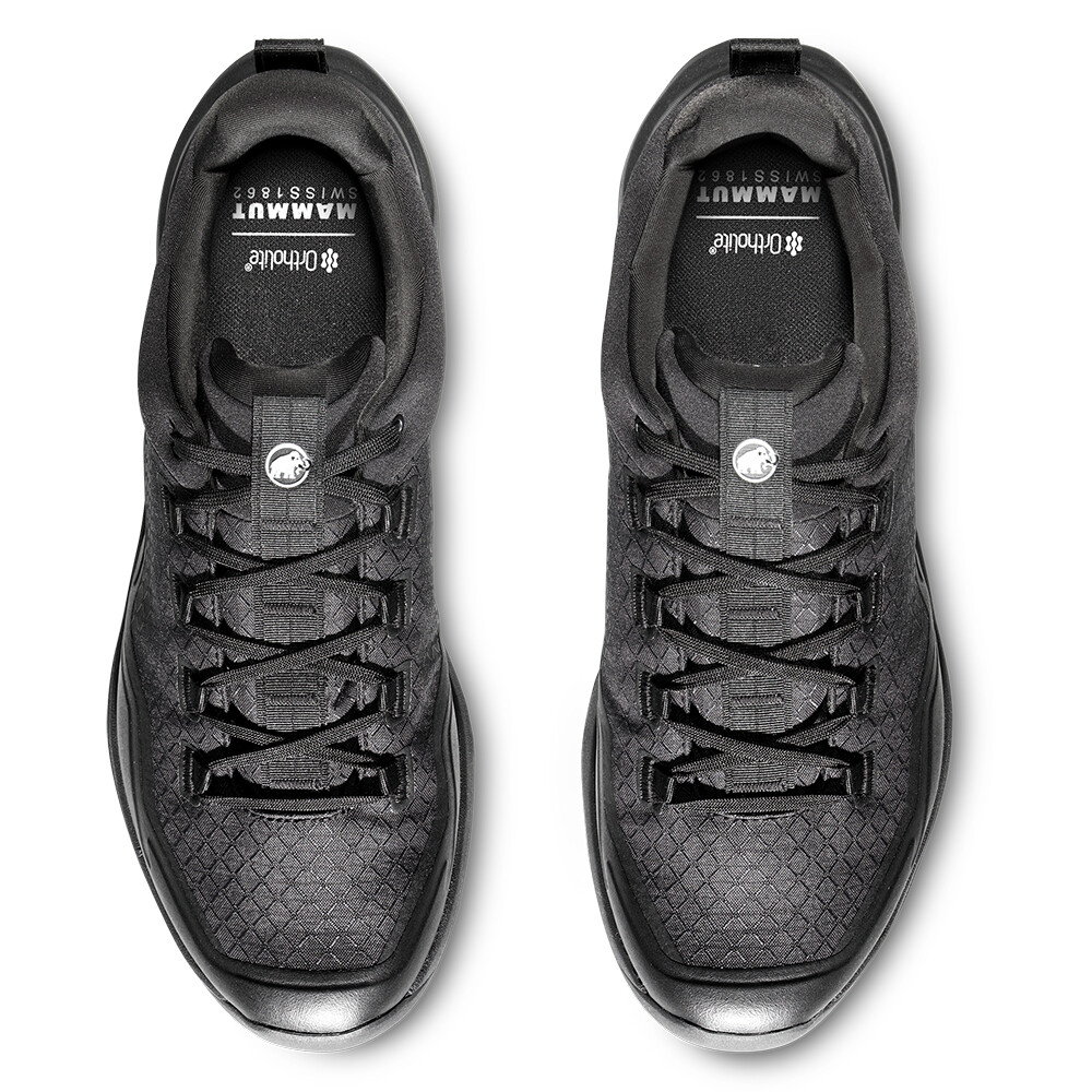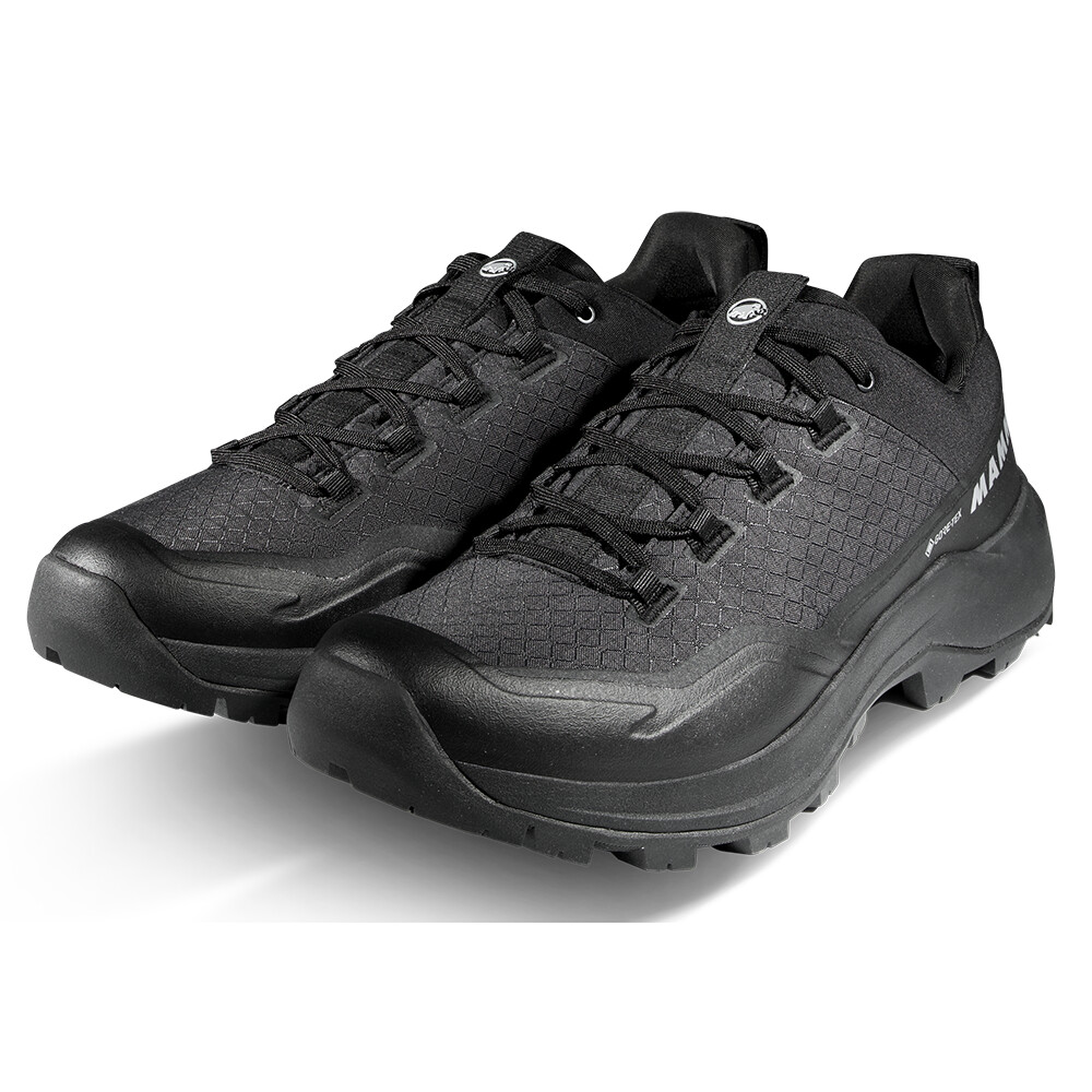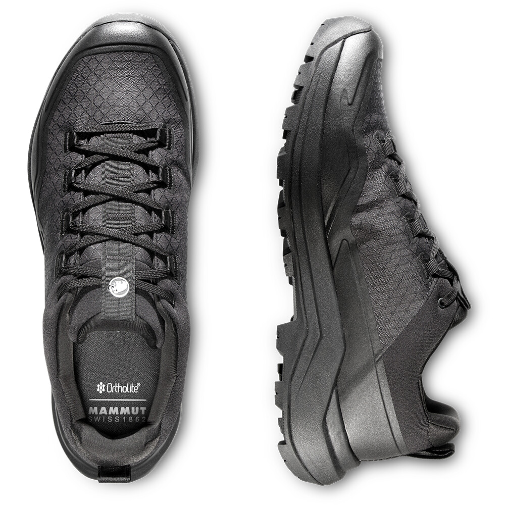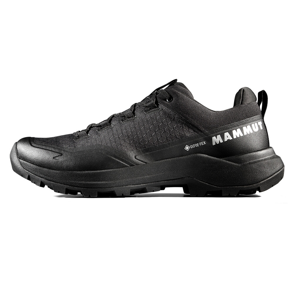 Lekka tekstylna cholewka i podszewka z membraną Gore-Tex zapewniają stopom komfort przez cały dzień, nawet w pochmurny dzień. Podeszwa środkowa z pianki z pamięcią kształtu doskonale amortyzuje kroki, a przyczepna podeszwa zewnętrzna Mammut Swiss Design zapewnia idealne dopasowanie do terenu.