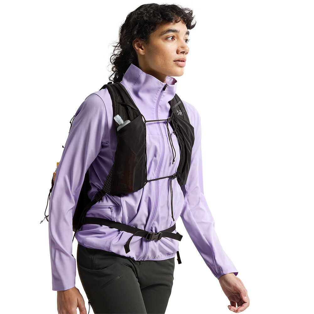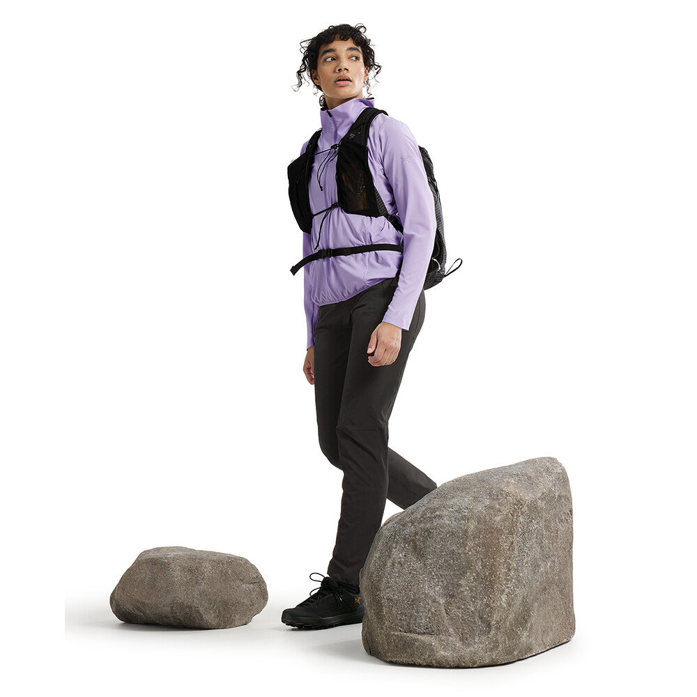 Damska kurtka Sima Jacket kanadyjskiej marki Arcteryx wykonana z materiału pochodzącego z recyklingu. Jest lekka, oddychająca dzięki tylnemu panelowi i łatwa do spakowania do własnej kieszeni. Dół i rękawy wykończone są elastycznym ściągaczem.