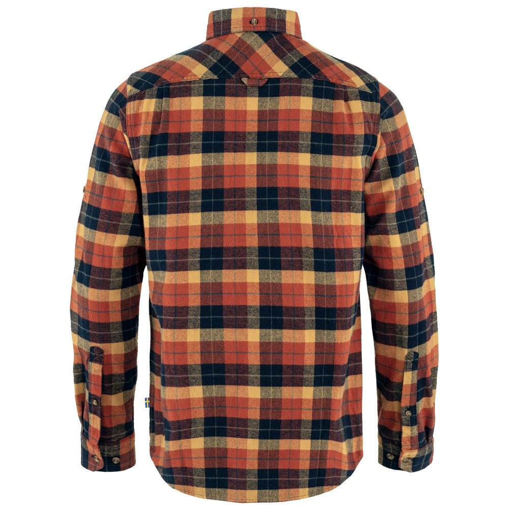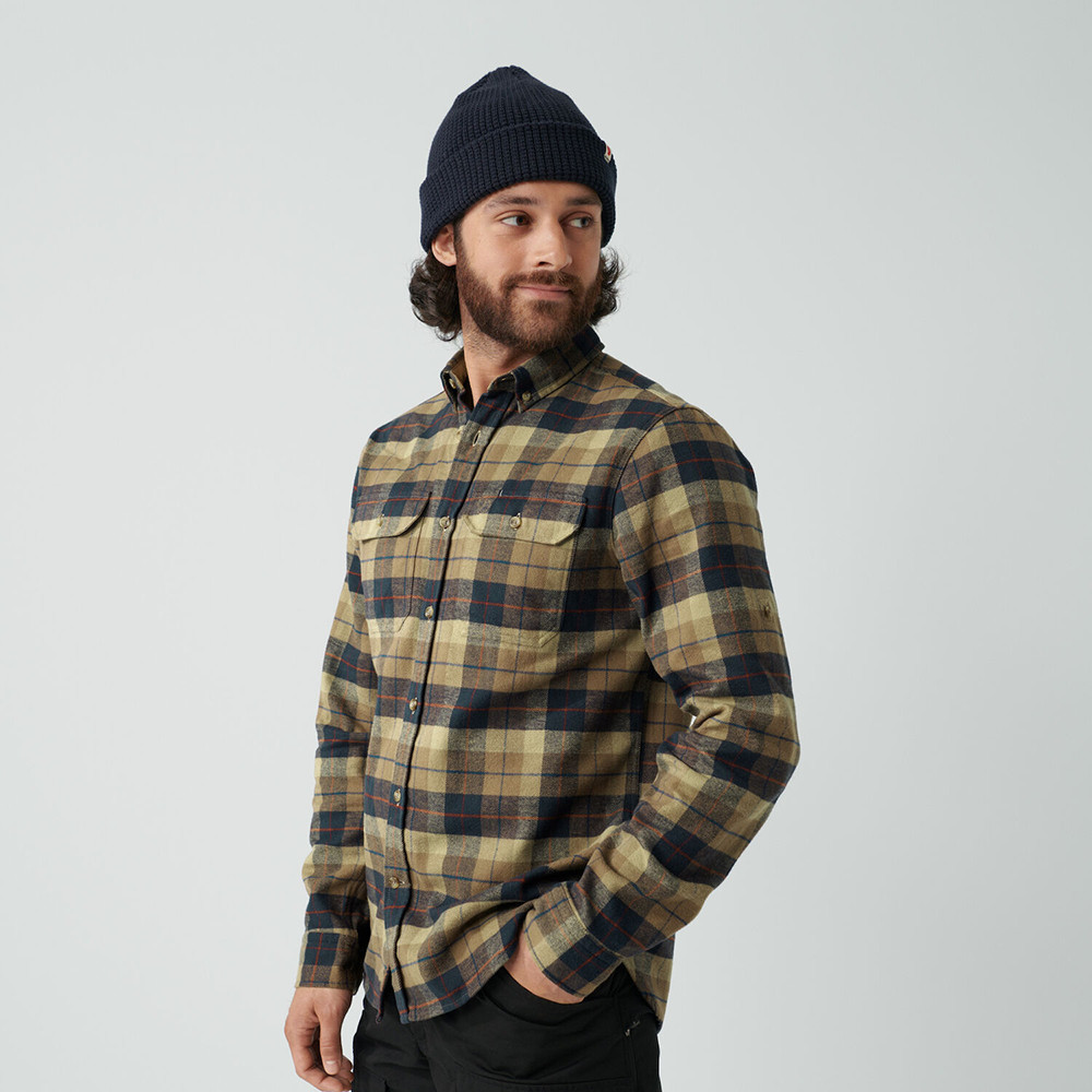 Męska koszula flanelowa Fjällräven do pracy i wypoczynku. Wygodny materiał, podwijane rękawy, kieszenie na piersi zapinane na guziki z miejscem na długopis.