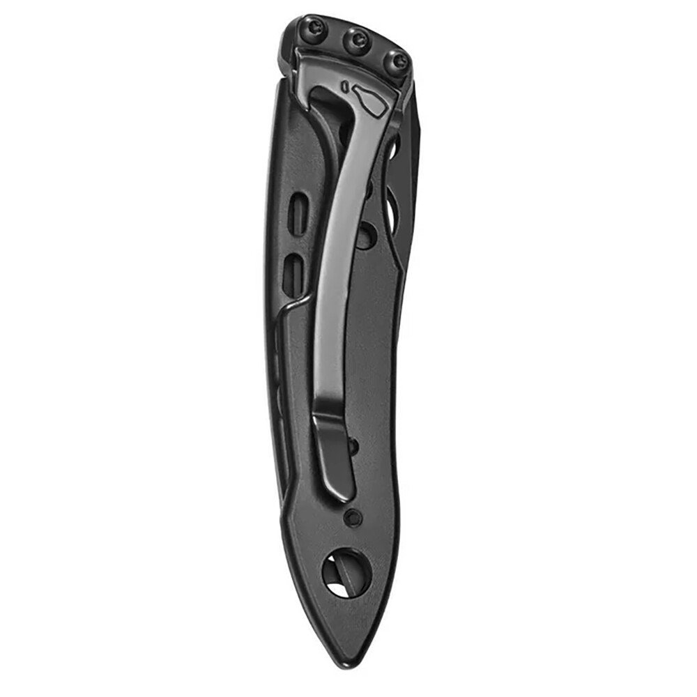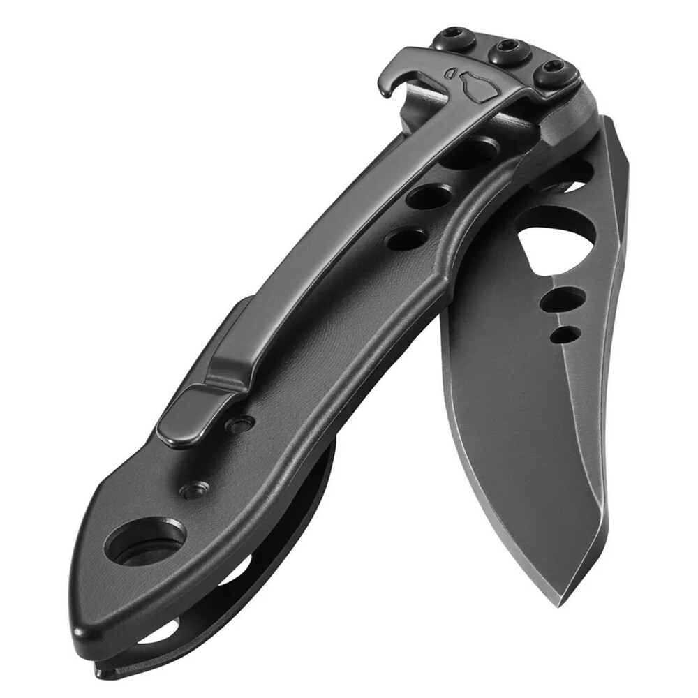 Ważący zaledwie 37 g nóż Skeletool KB firmy Leatherman to świetny dodatek do kieszeni. Posiada gładkie ostrze wykonane z wysokiej jakości stali nierdzewnej, blokadę bezpieczeństwa, a także otwieracz do butelek i klips do zawieszenia na pasku. Elegancki czarny design ostrza podkreśla szlachetność stali nierdzewnej noża.