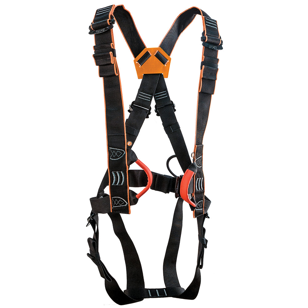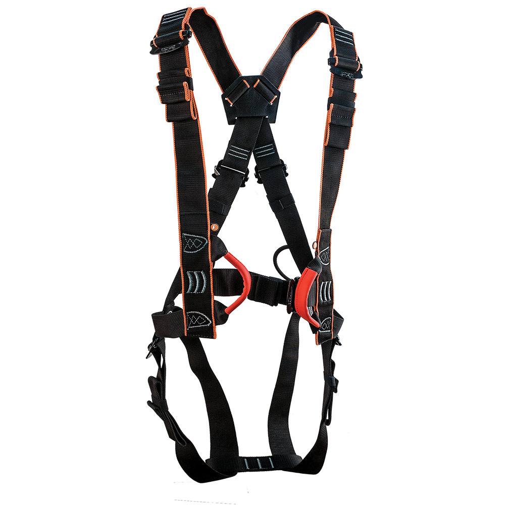 Uniwersalna uprząż na całe ciało. Podwójna certyfikacja sprawia, że nadaje się zarówno do wspinaczki, jak i do pracy.