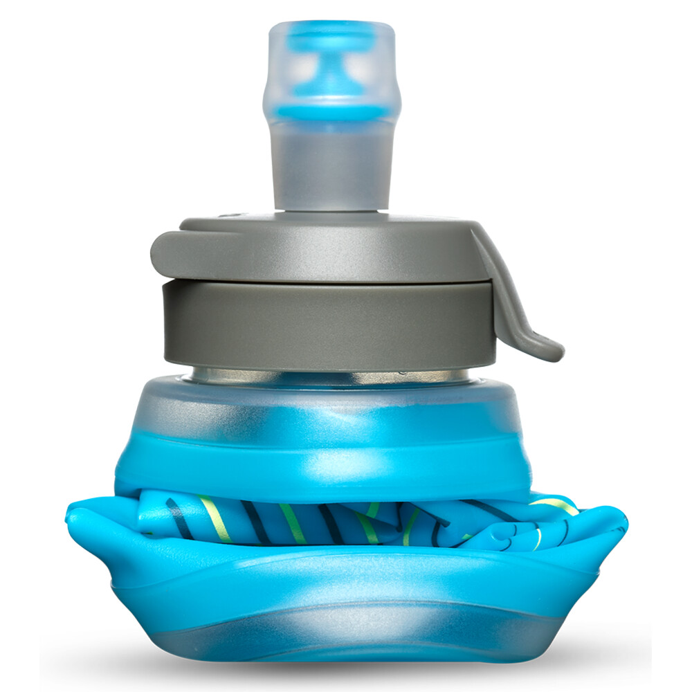 Elastyczna butelka, która zachowuje swój kształt po napełnieniu jak klasyczna butelka z twardego plastiku. Jednak po opróżnieniu zwija się jak miękka butelka do biegania. Wyposażony w ustnik z osłoną przeciwpyłową.