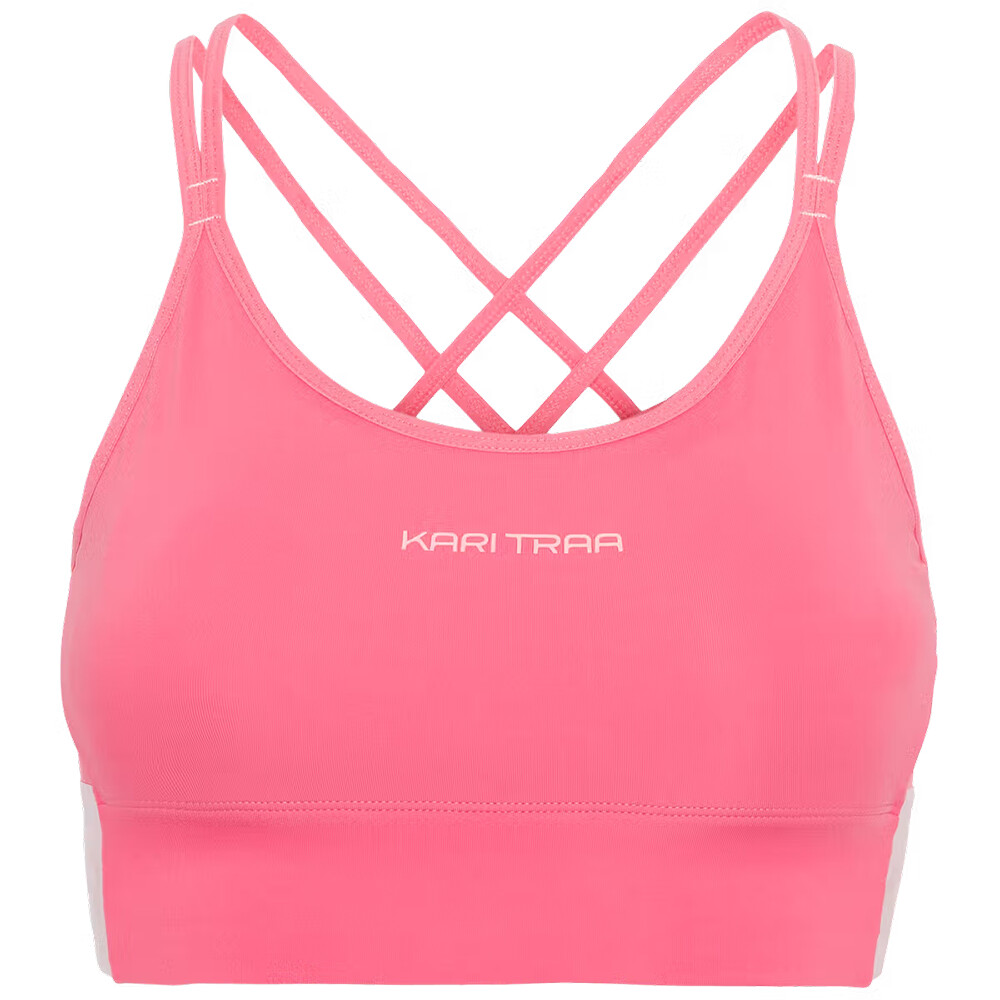 Biustonosz sportowy Sofia Bra norweskiej marki Kari Traa do uprawiania sportów o niższej intensywności lub do noszenia na co dzień. Ma wygodną szeroką gumkę, która pozostaje na miejscu, elastyczne podwójne ramiączka i odpinane miseczki. Lekki, szybkoschnący materiał jest częściowo wykonany z materiałów pochodzących z recyklingu.