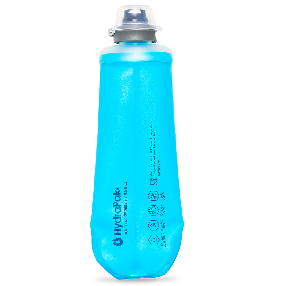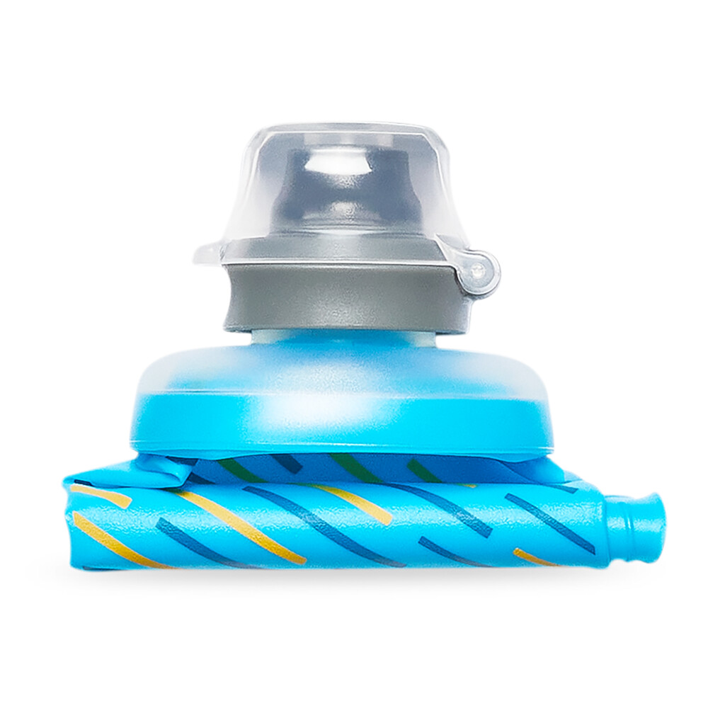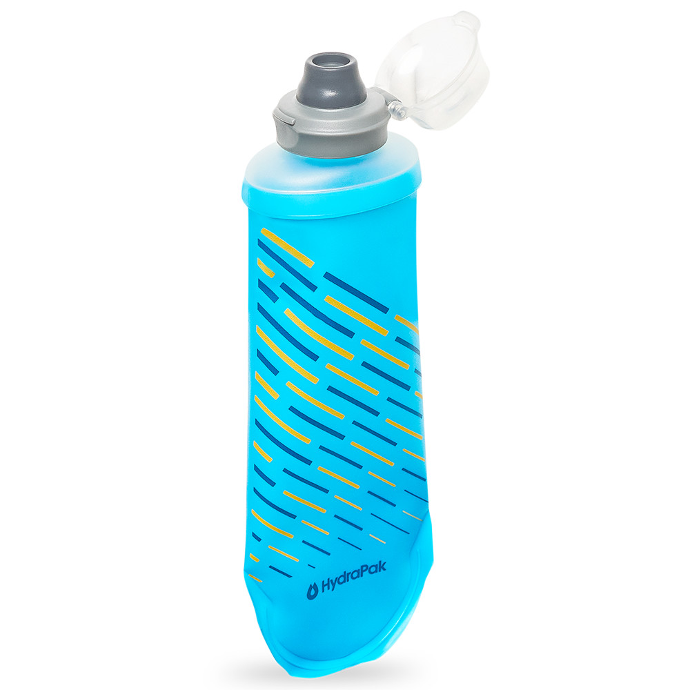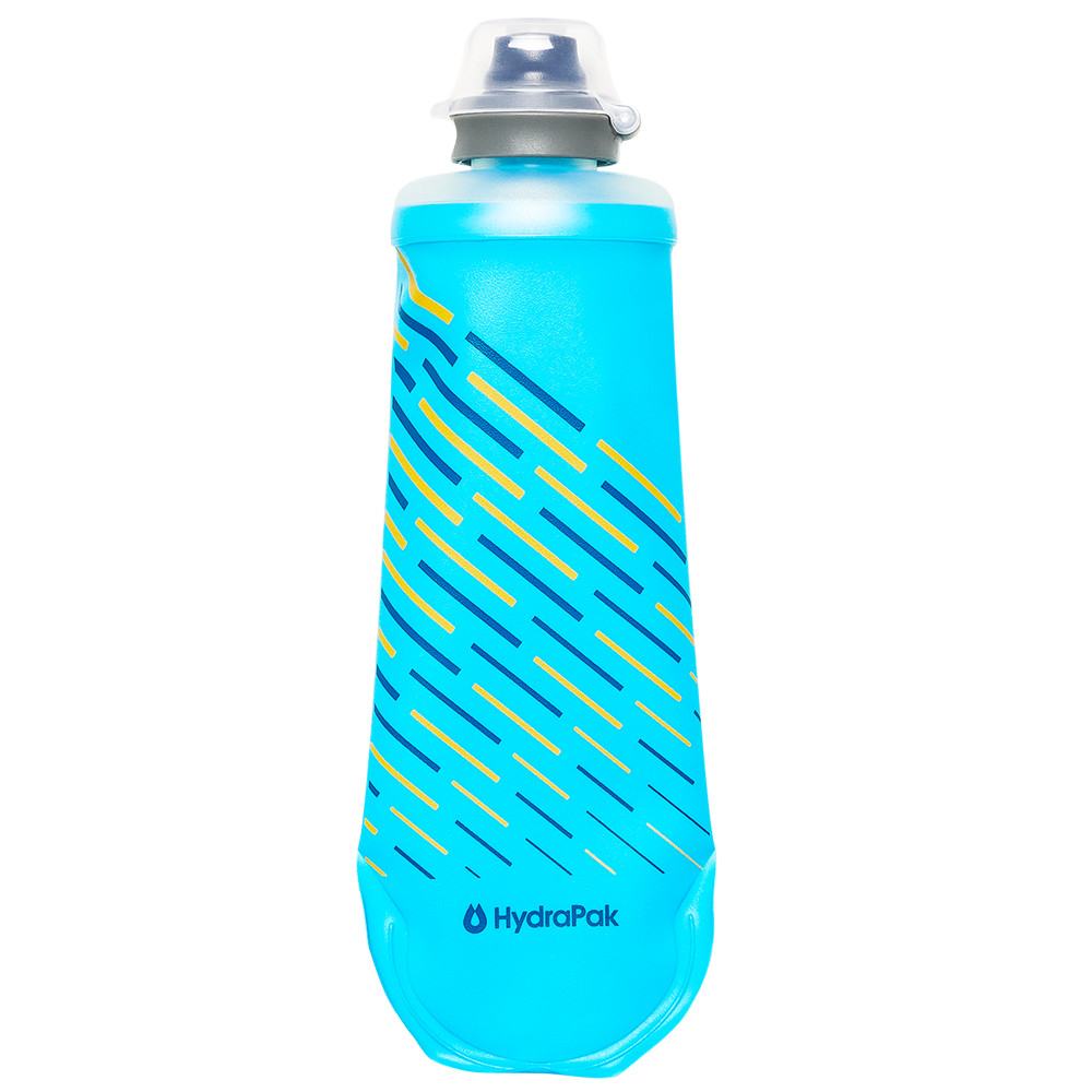 Butelka dla biegaczy na treningi i wyścigi od Hydrapak. Wykonany jest z miękkiego materiału, dzięki czemu jest całkowicie składany po opróżnieniu. Ma szerszy ustnik, dzięki czemu nadaje się do wody, żeli energetycznych i innych odżywek o różnej gęstości. Zawór jest wyposażony w obrotową osłonę, która zapobiega nieprzyjemnemu "przyklejaniu się" do kamizelki biegowej, pasa, plecaka lub innego sprzętu. Dzięki elastycznemu materiałowi płyn wewnątrz butelki przemieszcza się w mniejszym stopniu i nie przeszkadza podczas ruchu.
