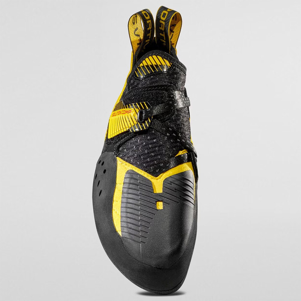 Solution Comp bazuje na bardzo popularnym modelu Solution włoskiej marki La Sportiva. Został przeprojektowany za namową i we współpracy ze wspinaczkowym topem wyścigowym, aby lepiej pasował do specyfiki tras wyścigowych na sztucznej ścianie. Oczywiście nie zapomniano o przyczepnej podeszwie Vibram® XS Grip2 3.5mm, która doskonale trzyma na zaokrąglonych i gładszych stopniach. Anatomiczna podeszwa środkowa została wykonana z materiału Hytrel i gwarantuje dobre wsparcie palców śródstopia, dzięki czemu wspinacz ma pełną kontrolę podczas stawiania kroków nawet na małej stupie.