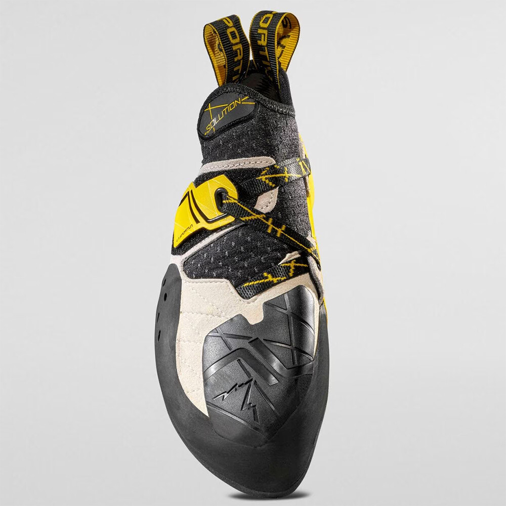 Solution to jeden z najpopularniejszych modeli wspinaczki sportowej włoskiej marki La Sportiva. Ich urok tkwi w szerokim asortymencie. Pnącza mają przyczepną podeszwę o wysokiej przyczepności, która doskonale trzyma się na zaokrąglonych i gładszych bieżnikach. Anatomiczna podeszwa środkowa wykonana jest z materiału Hytrel i gwarantuje dobre wsparcie palców śródstopia, dzięki czemu wspinacz ma pełną kontrolę podczas stąpania nawet na małym stopniu. Jednocześnie podeszwa środkowa i podeszwa zewnętrzna są elastyczne, więc nie ma potrzeby częstego stąpania wspinacza, jeśli stopa musi być umieszczona na tarciu. Ogólną stabilność wspinacza na stopie gwarantuje czteropunktowy system uprzęży, który otacza stopę. Pięta ma anatomiczny kształt zapewniający bezpieczne zaczepienie. Podbicie jest również mocno gumowane, a jego profil zapewnia lepszą przyczepność.