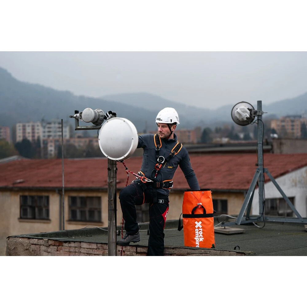 Intuicyjny i łatwy w użyciu pozycjoner Rock Empire Stand Positioner umożliwia szybką regulację długości w celu uzyskania odpowiedniej pozycji. Materiał zawiesia może absorbować siłę uderzenia spadających ładunków (przy współczynniku upadku mniejszym niż 1). Do połączenia z uprzężą należy użyć złącza roboczego (EN 361), najlepiej typu majlonka lub pierścienia Rock Empire Connect Ring.
