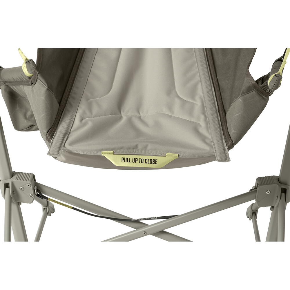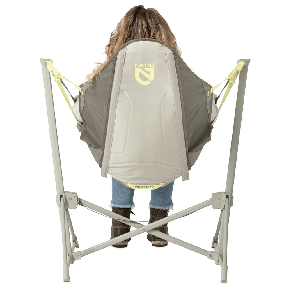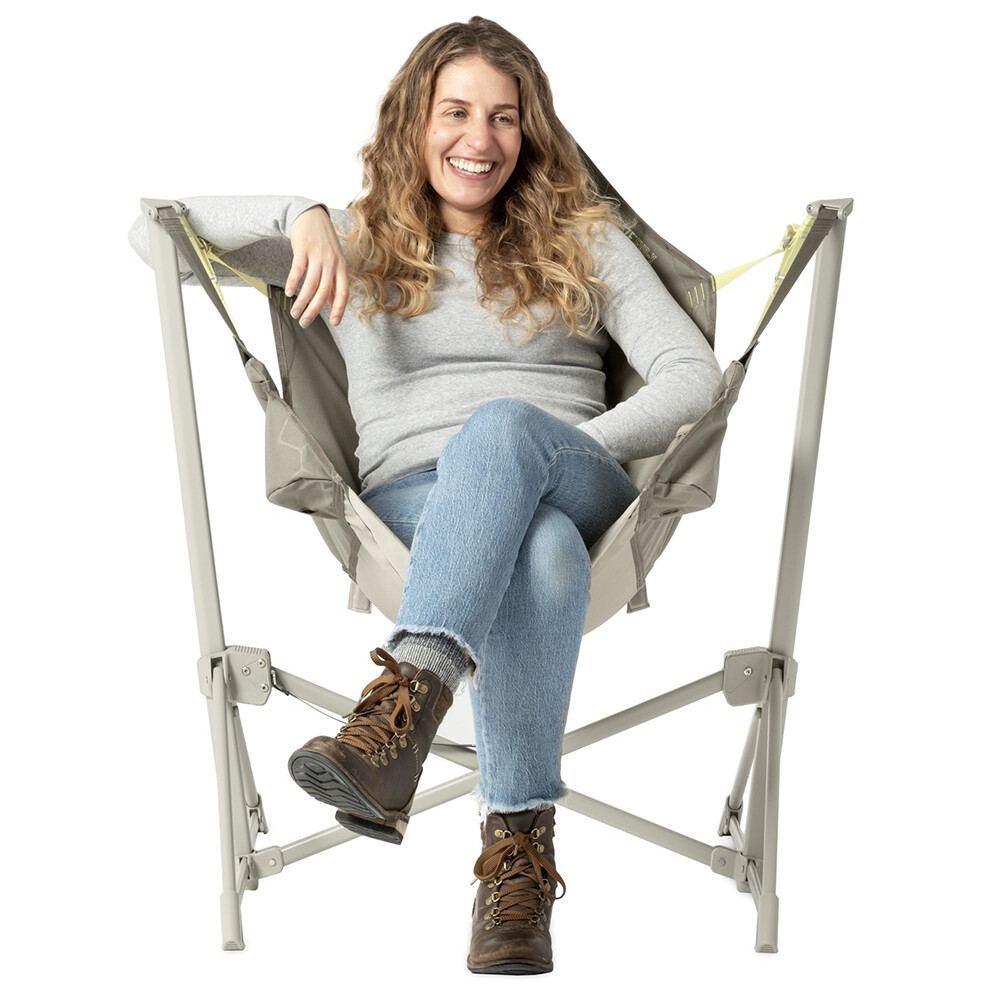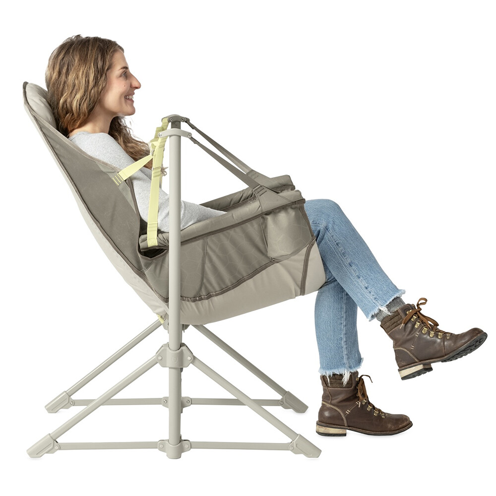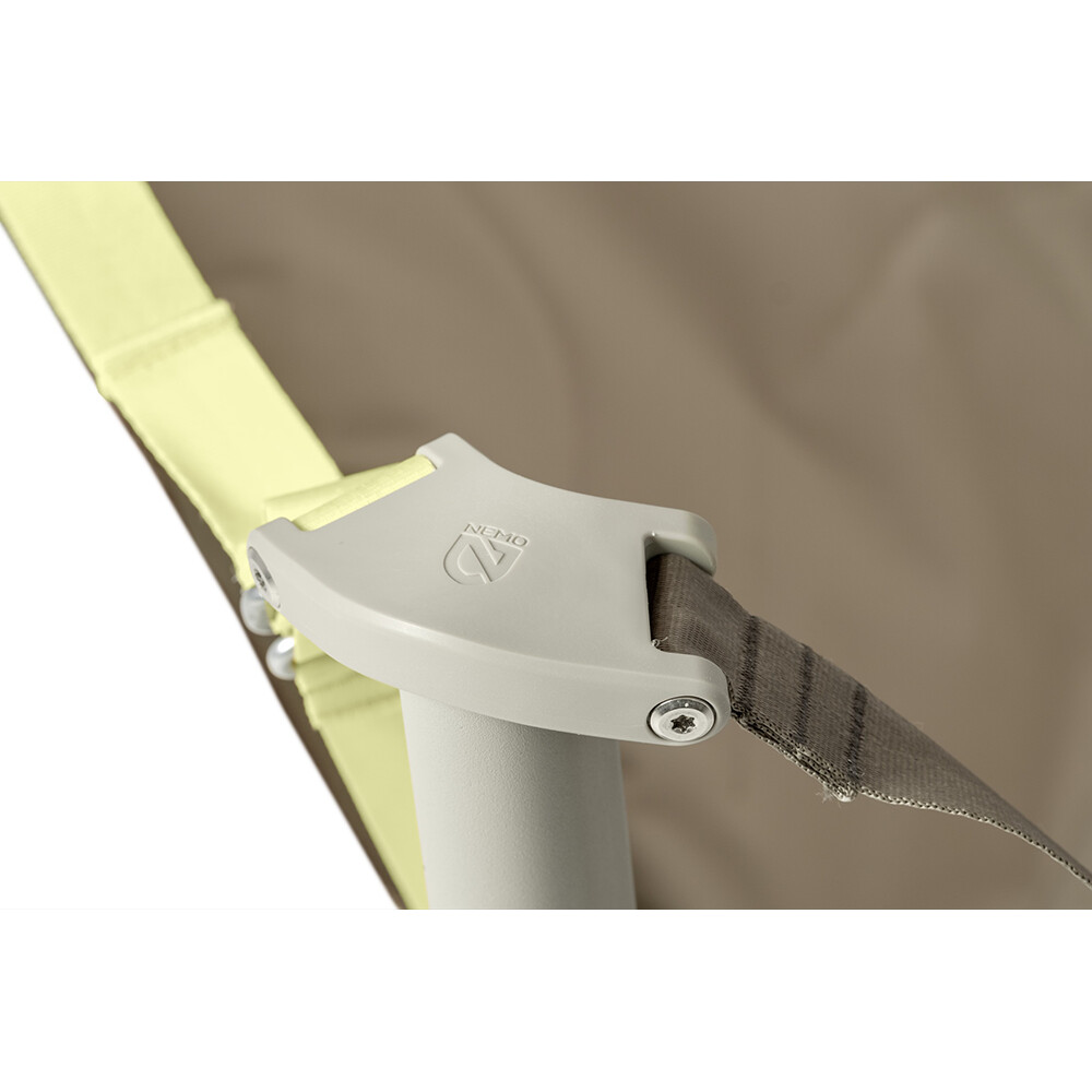 Fotel Stargaze Evo-X od Nemo zapewni Ci wygodne miejsce do siedzenia i przyjemne doznania podczas bujania. Rama wykonana jest z wytrzymałego aluminium lotniczego i wszystko jest gotowe do bardzo prostego, jednoetapowego montażu. Nie potrzebujesz żadnych narzędzi i nie ma potrzeby skomplikowanej regulacji poszczególnych części. Jednocześnie krzesło Stargaze Evo-X zachowuje pełną regulację (regulacja pochylenia oparcia, podparcia łokci i zagłówka z regulacją wysokości). Po bokach znajdują się kieszenie na napój, telefon komórkowy lub czołówkę. Dzięki sześciu punktom podparcia jest bardzo stabilny na różnych rodzajach powierzchni (piasek, teren skalisty, miękkie podłoże). Fotel posiada certyfikat Bluesign®. Ciesz się płynnym ruchem bujania, jak w hamaku.