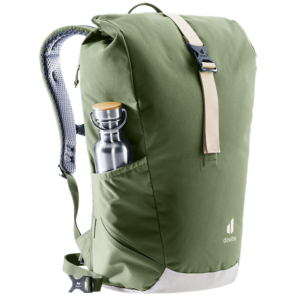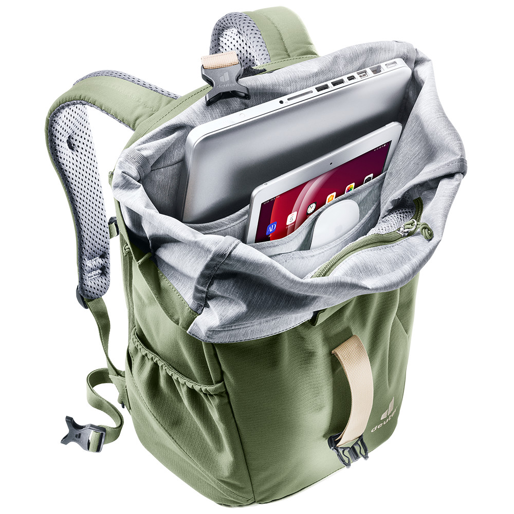 Step Out 22 to największy z rodziny plecaków Step Out niemieckiej marki deuter. Na pierwszy rzut oka ma niewiele wspólnego z mniejszymi. Jednak w rzeczywistości jest inaczej, ma tylko kilka dodatkowych szczegółów. Najbardziej zauważalną różnicą jest rolowane zamknięcie, które zmienia wygląd i nieco funkcję tego plecaka. Zaletą jest to, że można regulować górne zamknięcie, aby dać ci możliwość dopasowania, na przykład, bluzy.