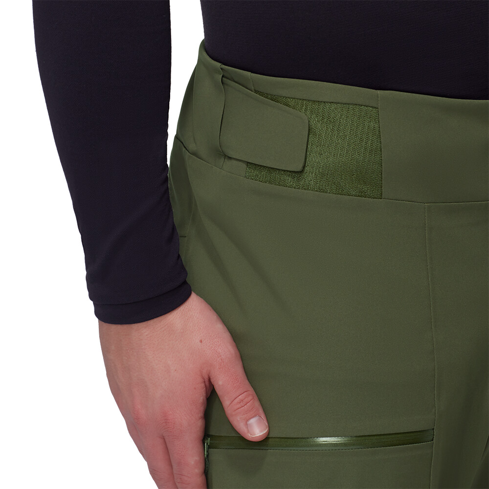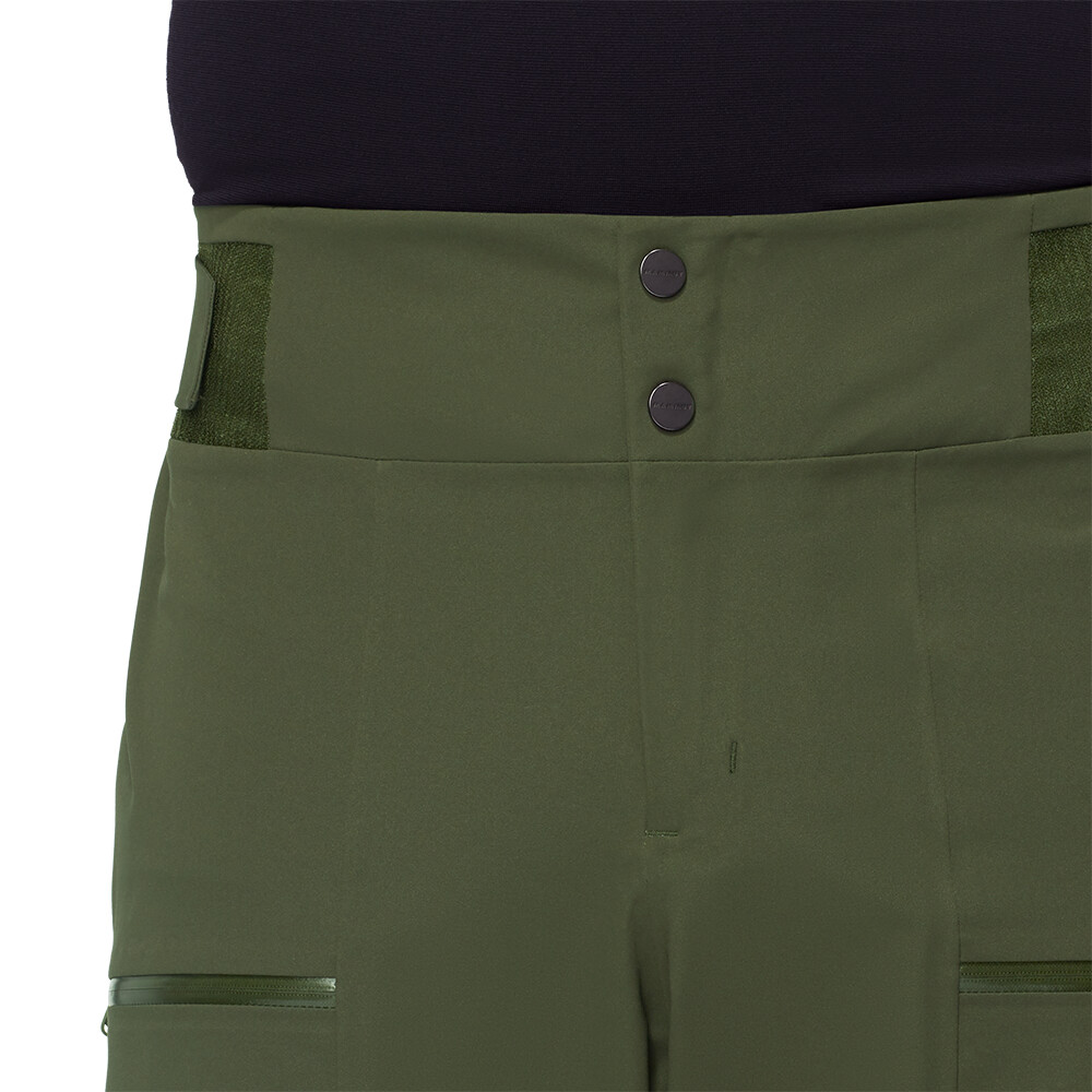 Męskie spodnie narciarskie Mammut zapewniają doskonałą ochronę na stoku. Spodnie mają wyższą talię, szelki, zapinaną na zamek wentylację, mnóstwo kieszeni, regulowaną szerokość nogawek i wzmocnienia na nogawkach. Spodnie są wodoodporne, wiatroszczelne i oddychające.